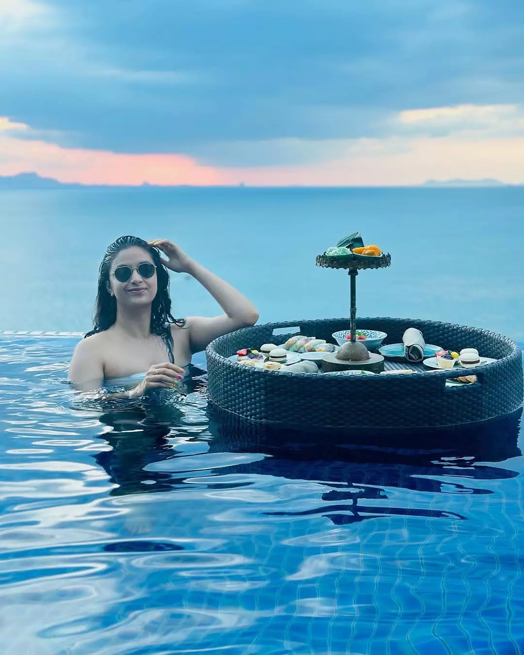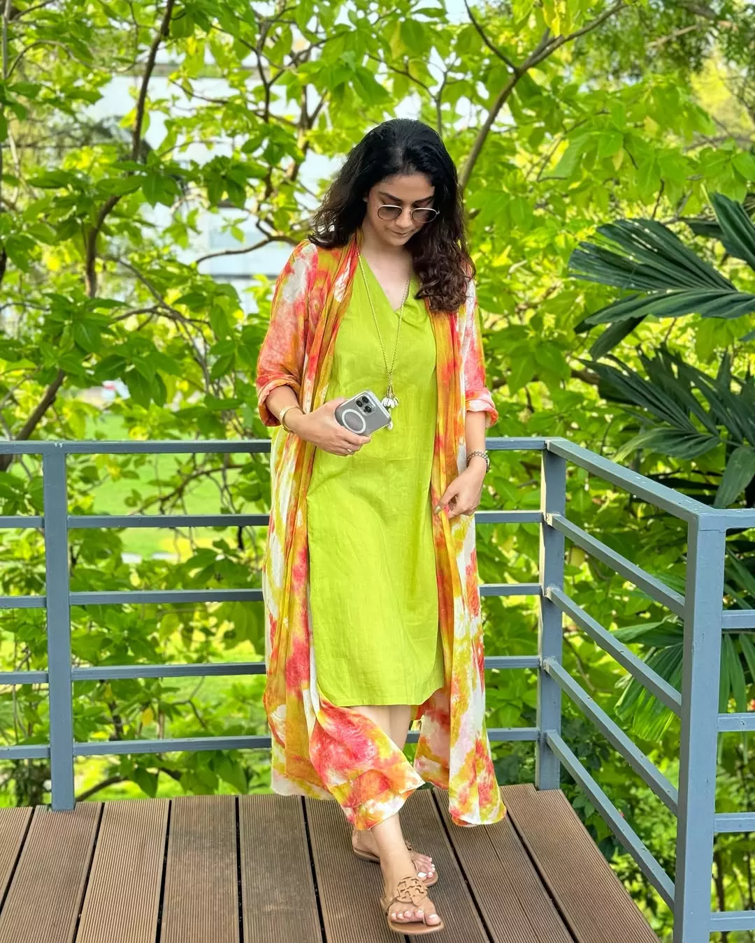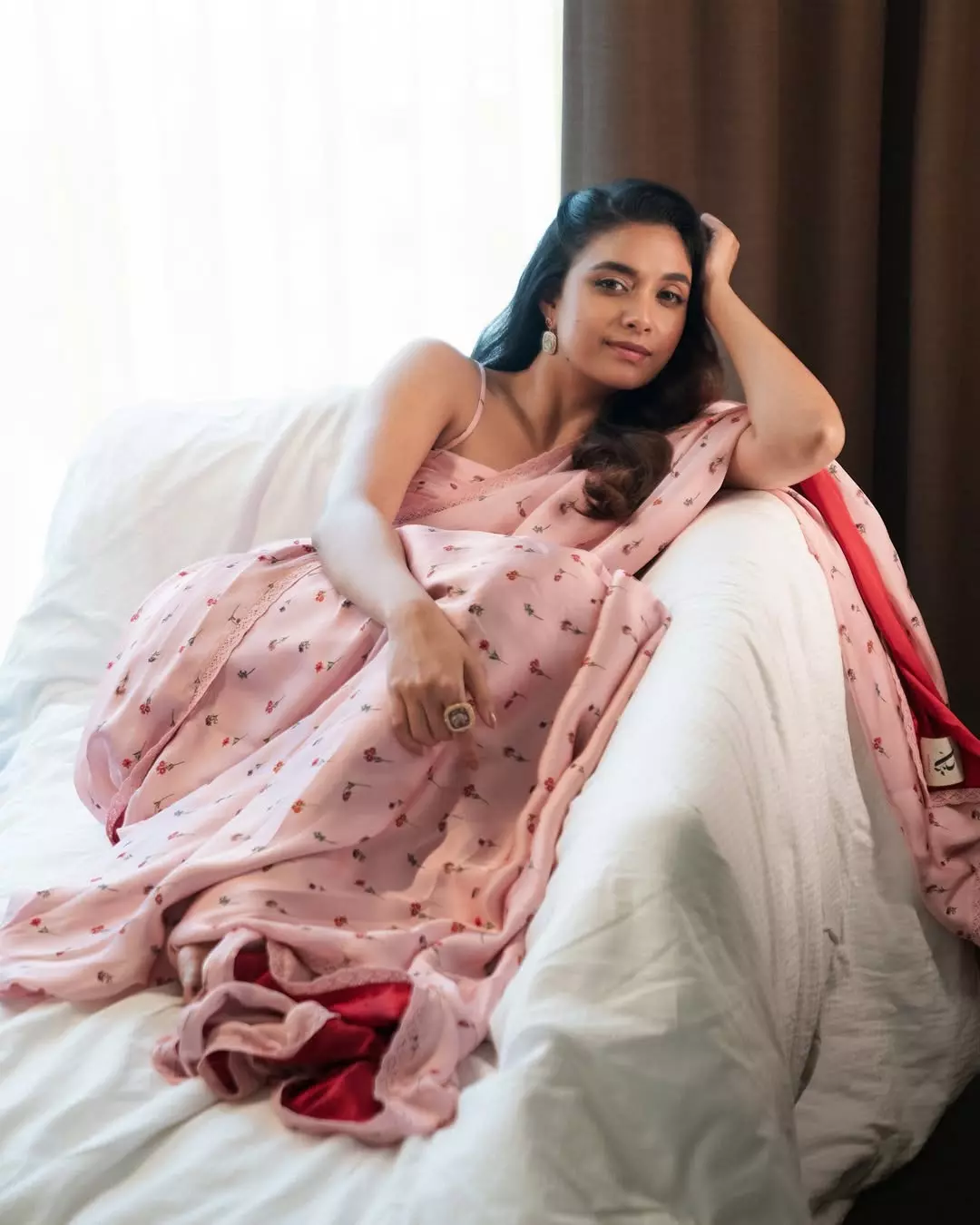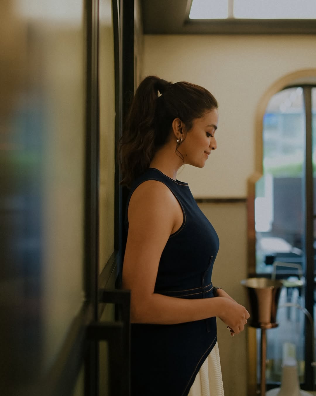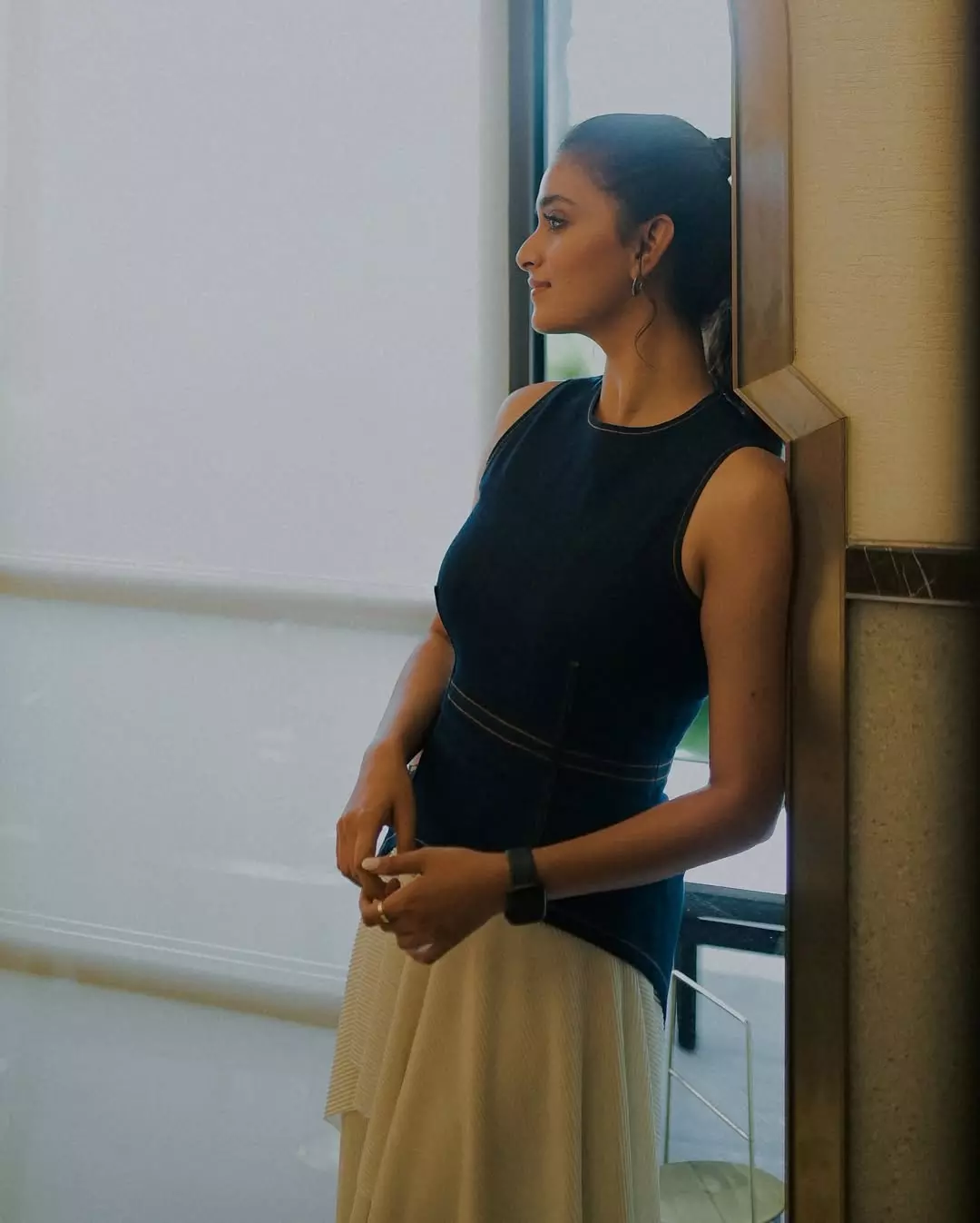 Keerthy Suresh recently posted a picture on Instagram from her Dubai trip, wearing a red saree with floral prints. She captioned the post, “Never a Du-Byeee ❤️🤍,” showing her love for the city and hinting she isn’t ready to say goodbye yet. The photo taken in a cozy indoor setting, captures Keerthy looking elegant as always.
