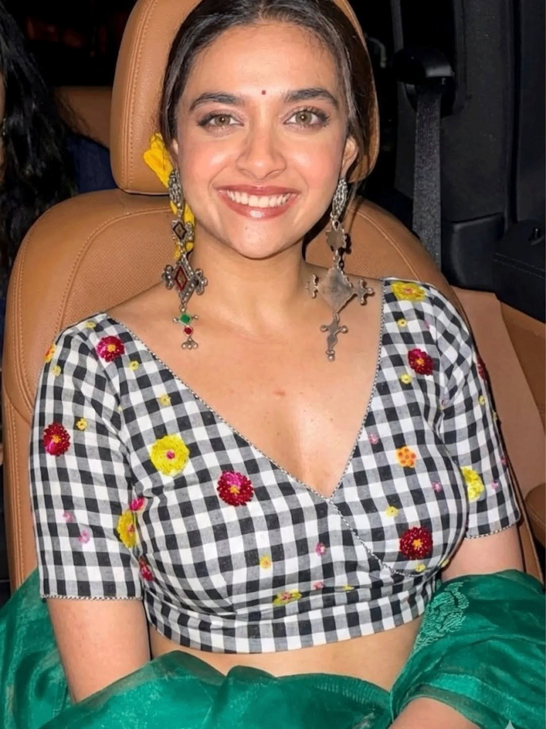 By: Tupaki Desk | 28 Nov 2025 1:26 PM ISTKeerthy Suresh radiates effortless charm in this playful gingham ensemble, perfectly blending tradition and modern style. The checkered blouse, adorned with vibrant floral embroidery, brings a youthful pop, while long statement earrings add a bold desi flair.