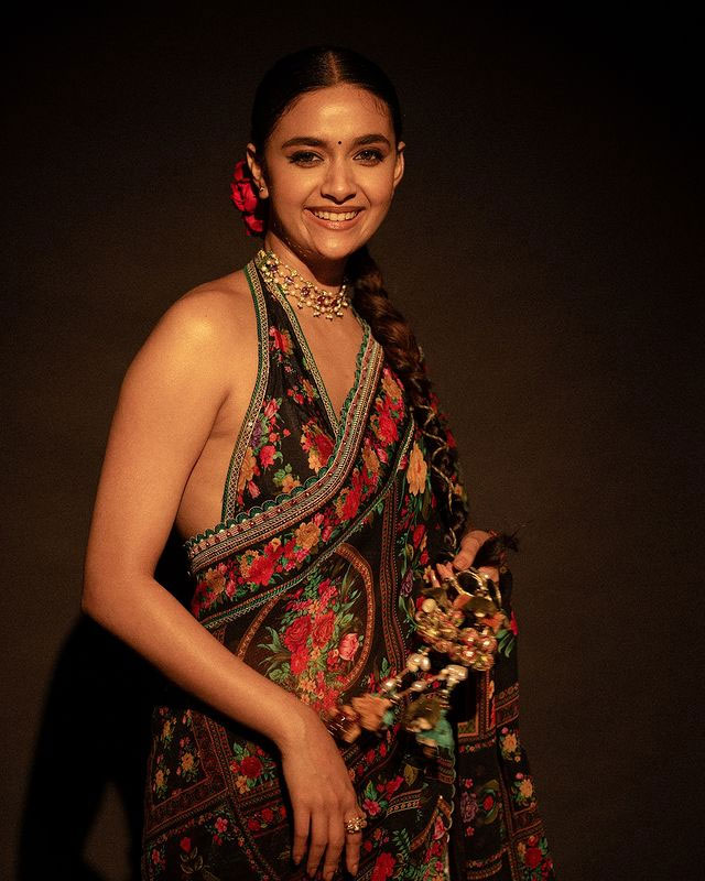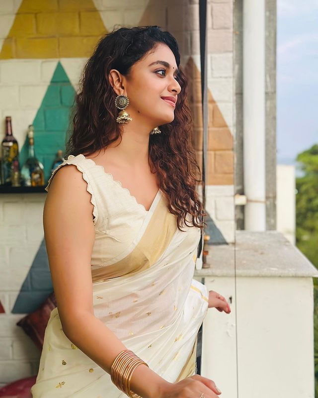 With over 18.8 million followers on Instagram (@keerthysureshofficial), her photos collection is a visual delight—featuring elegant sarees, chic western outfits
