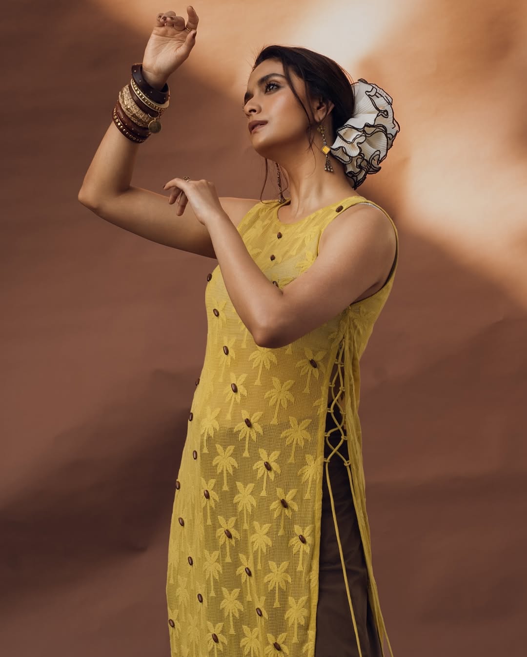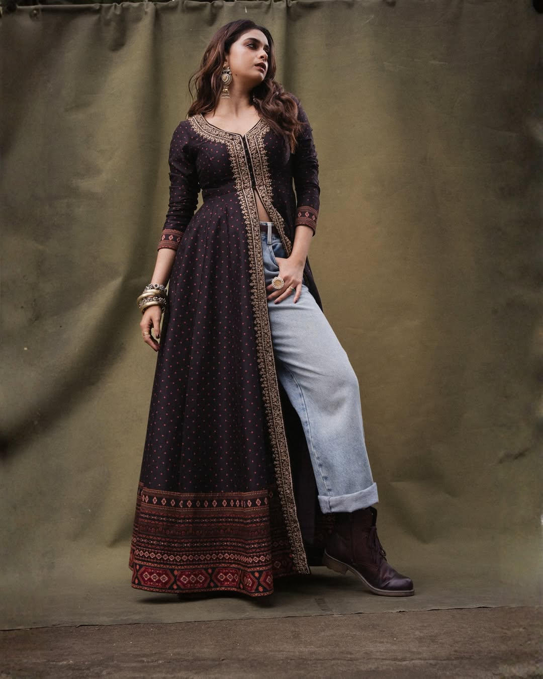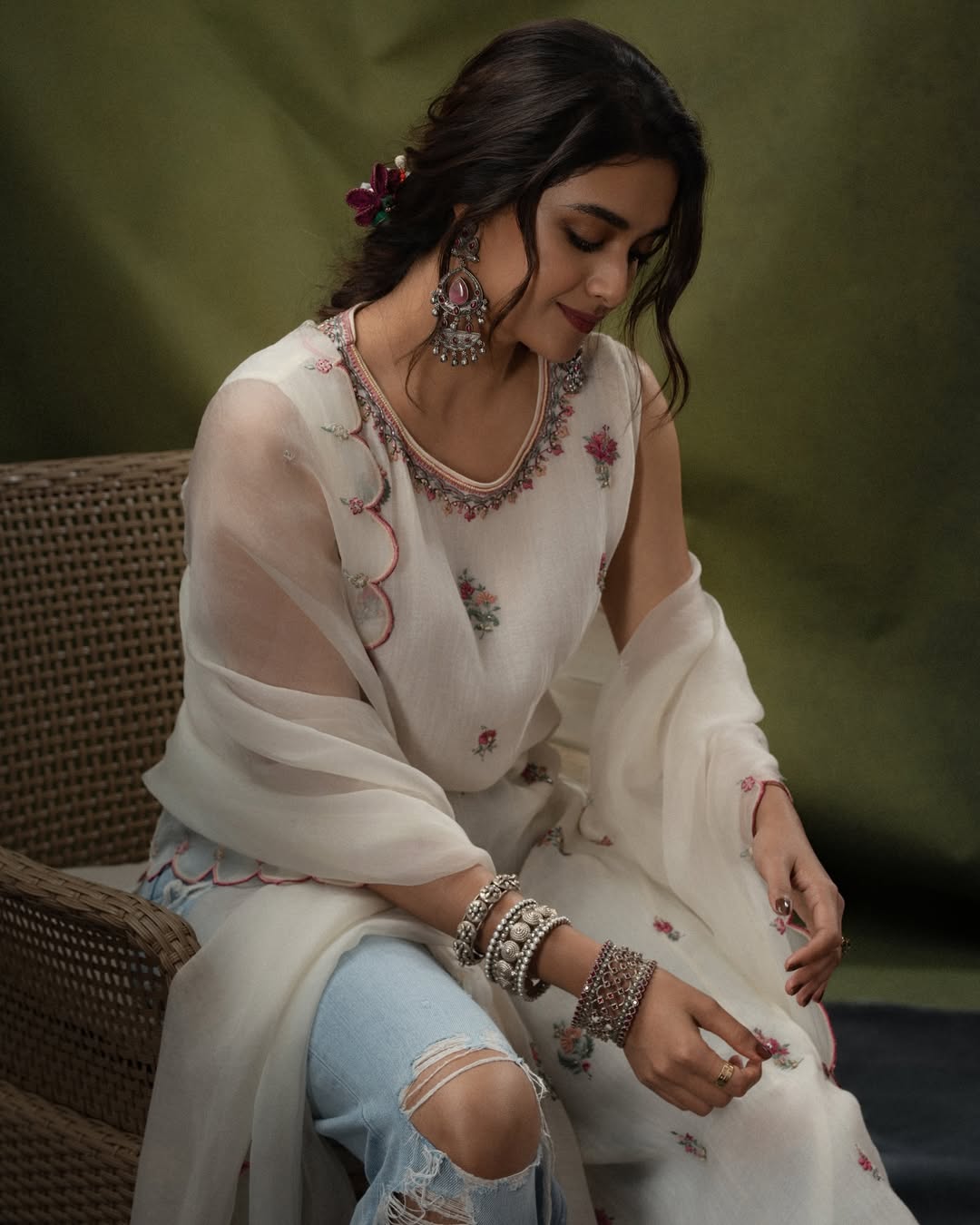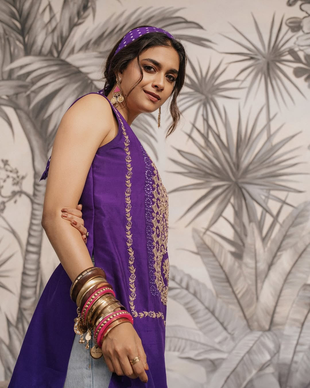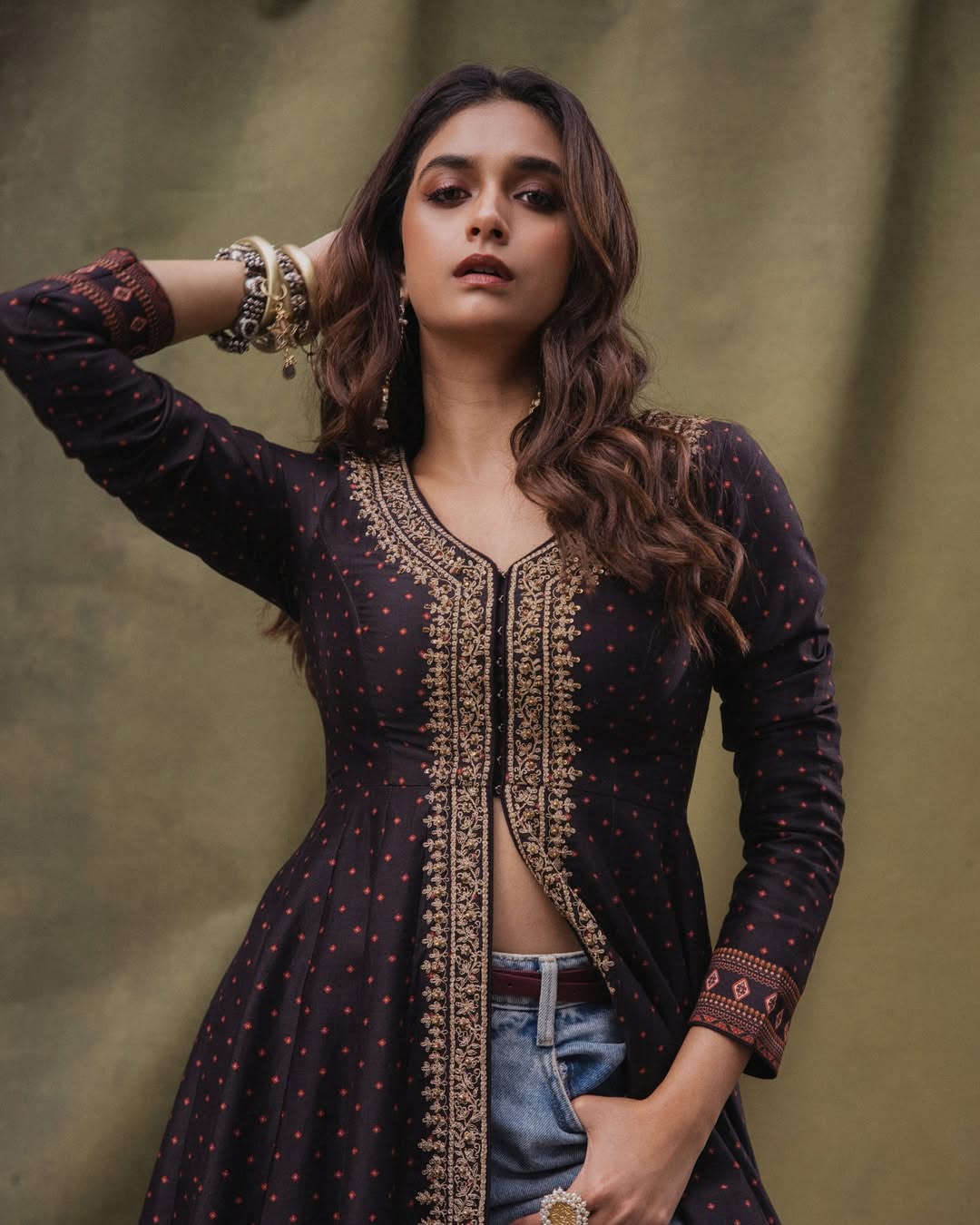 In her latest outing, Keerthy looked effortlessly chic in an ensemble styled by @archamehta. Her outfit, designed by @jigarmaliofficial, was paired with flawless makeup by @kalwon_beauty and hair by @swapnilkashid_. Elegant accessories—including earrings from @ananaofficial, hand stacks by @sachdeva.ritika, @sangeetaboochra, and @keiyura_jewelry, and rings by @samarpan_jewelleryfashion—added sophistication, while her favorite boots injected a playful edge to the look.