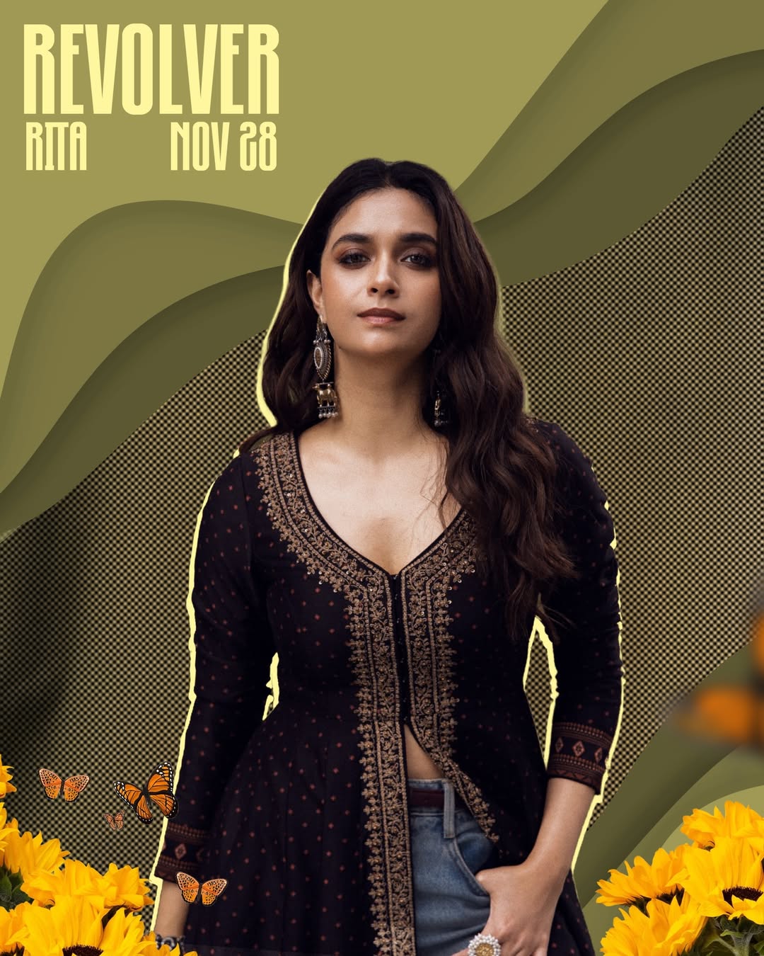 With the official poster boldly announcing REVOLVER RITA – NOV 28 and her chic promotional appearances, Keerthy Suresh is setting the stage for a highly anticipated release.
