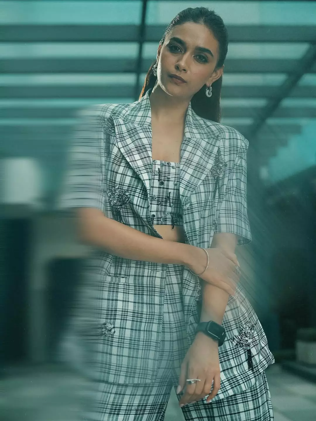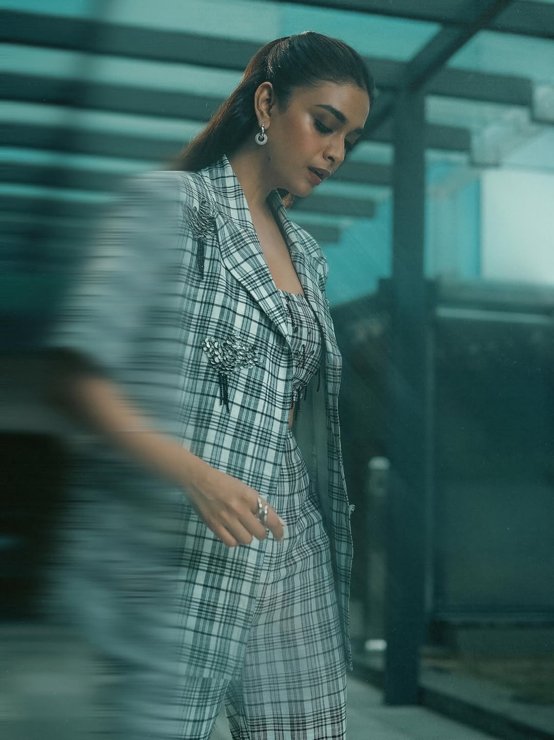 By: Priya Chowdhary Nuthalapti | 23 Aug 2025 9:13 AM ISTSouth Indian actress Keerthy Suresh never fails to impress with her impeccable fashion sense, and her recent look is no exception. The National Award-winning star stepped out in a striking plaid co-ord set featuring high-waisted wide-leg trousers, a cropped top, and a matching oversized blazer. Her sleek ponytail, minimal accessories, and pointed black heels perfectly complemented the bold yet elegant outfit. Known for effortlessly blending traditional charm with modern flair, Keerthy continues to set style goals for fans across the country.