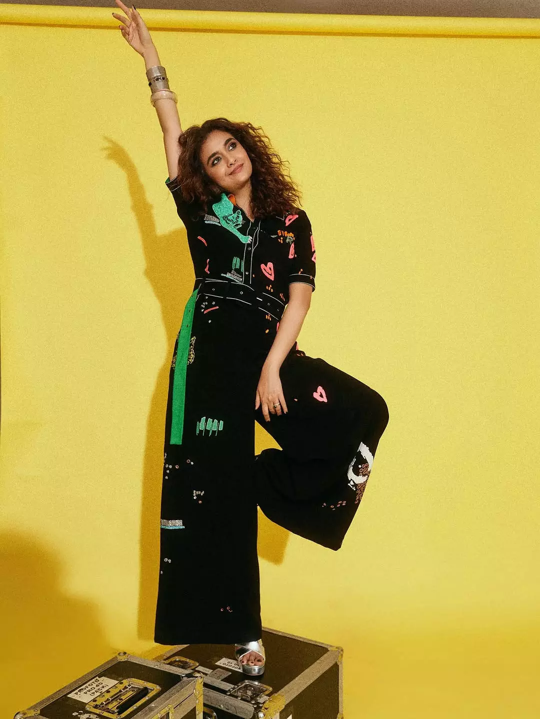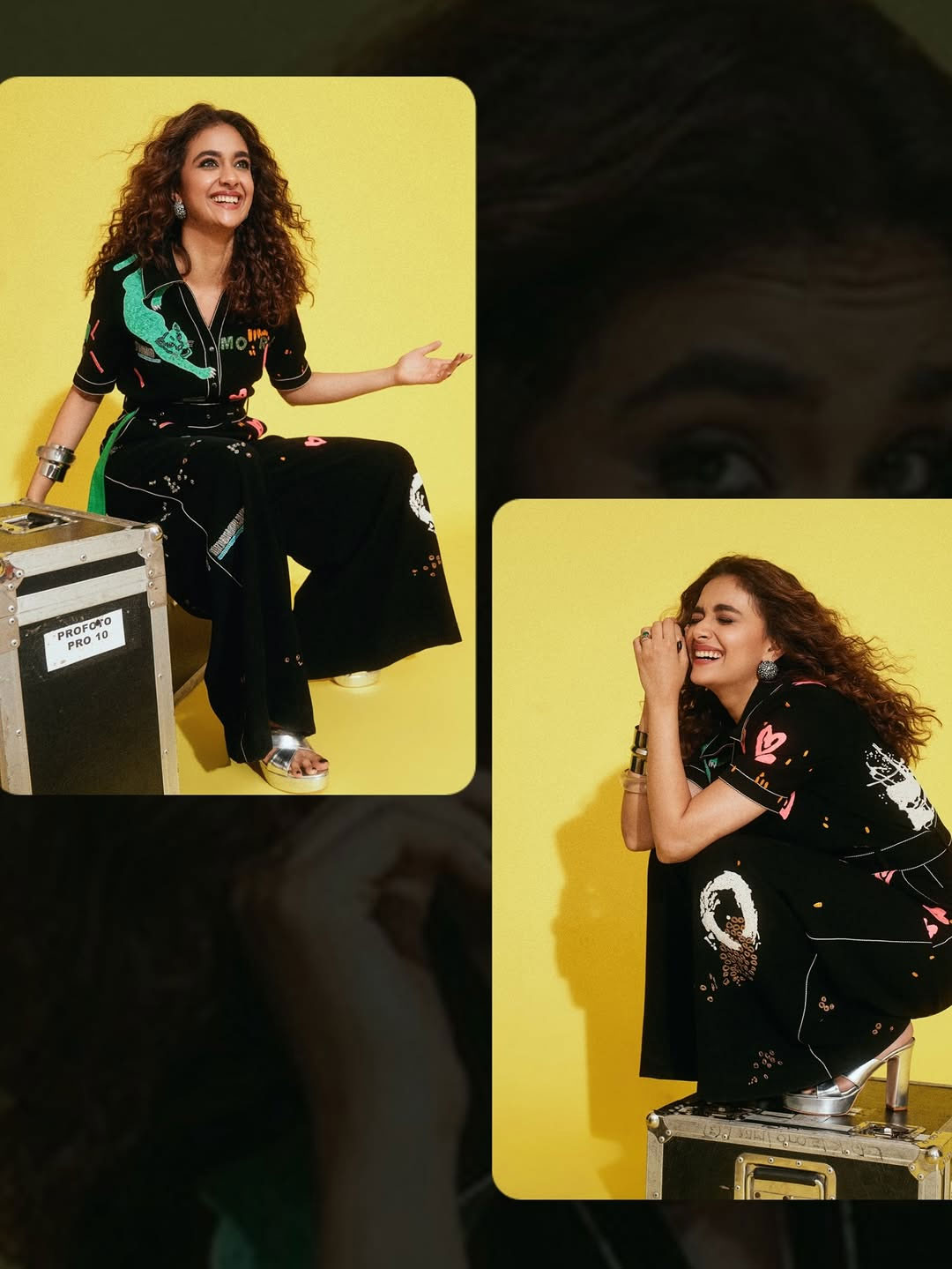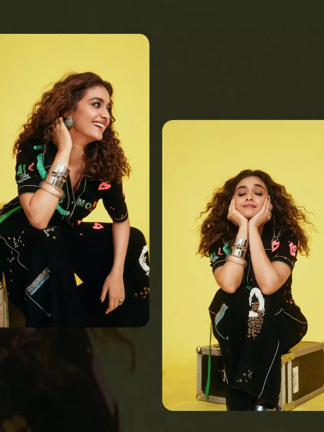 By: Tupaki Desk | 2 July 2025 10:52 PM ISTPopular actress Keerthy Suresh shared a cool new picture on Instagram, which is already trending. In the photo, Keerthy is seen posing confidently in a funky black outfit with colourful prints. Her curly hair and stylish look caught everyone’s attention. The bright yellow background adds extra charm to the picture.