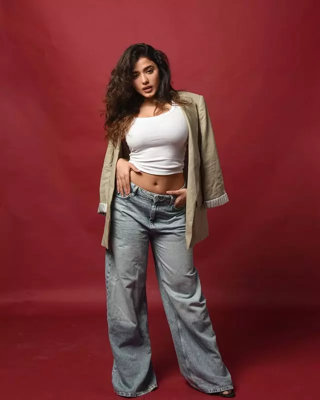 In this stunning photo, Ketika Sharma exudes elegance and grace in a richly embroidered red ensemble.