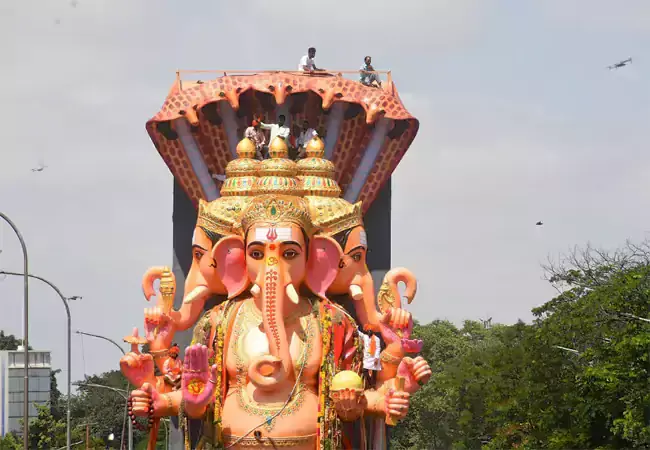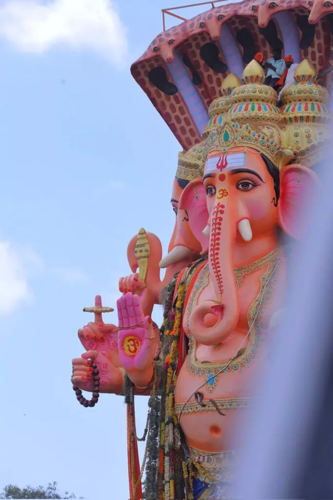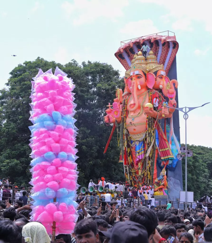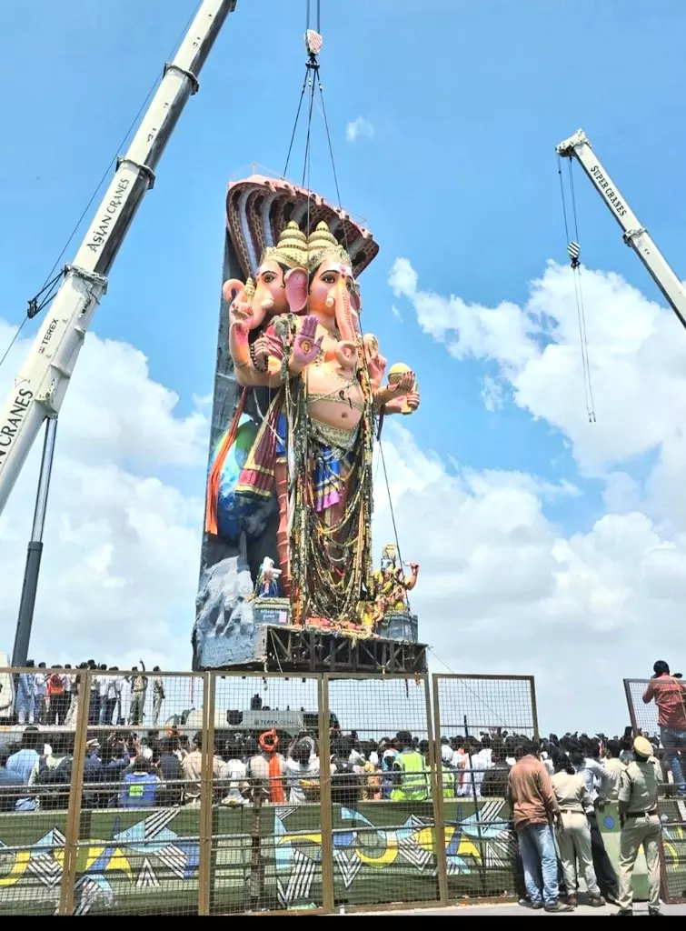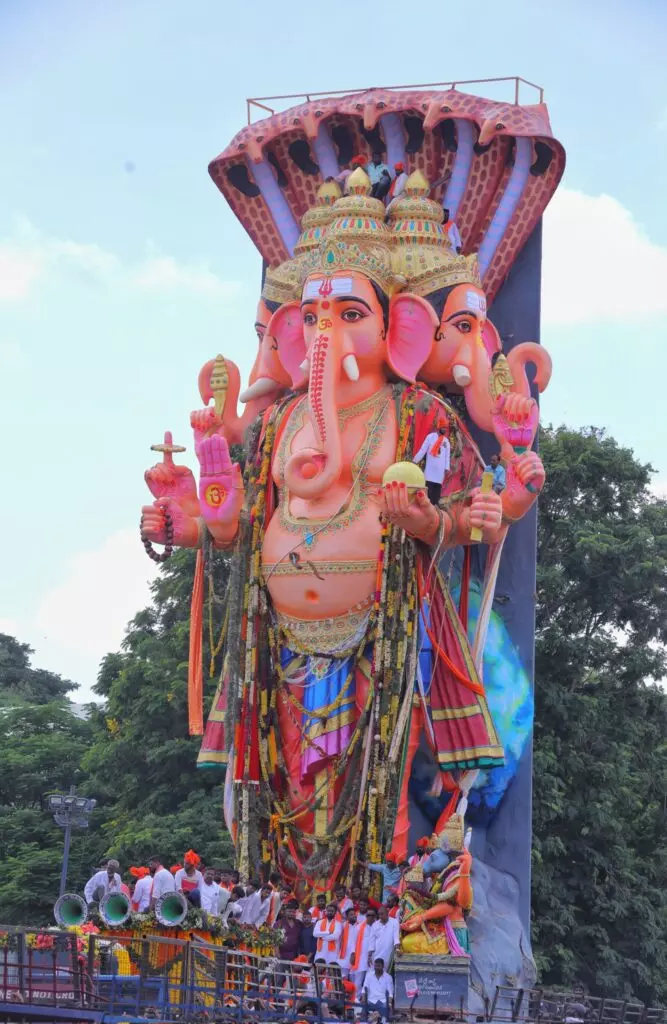 To give perspective, the Khairatabad Ganesh idol was taller than the well-known Buddha statue situated in the middle of the same lake, which is 58 feet in height. This made the sight even more awe-inspiring for the devotees.
