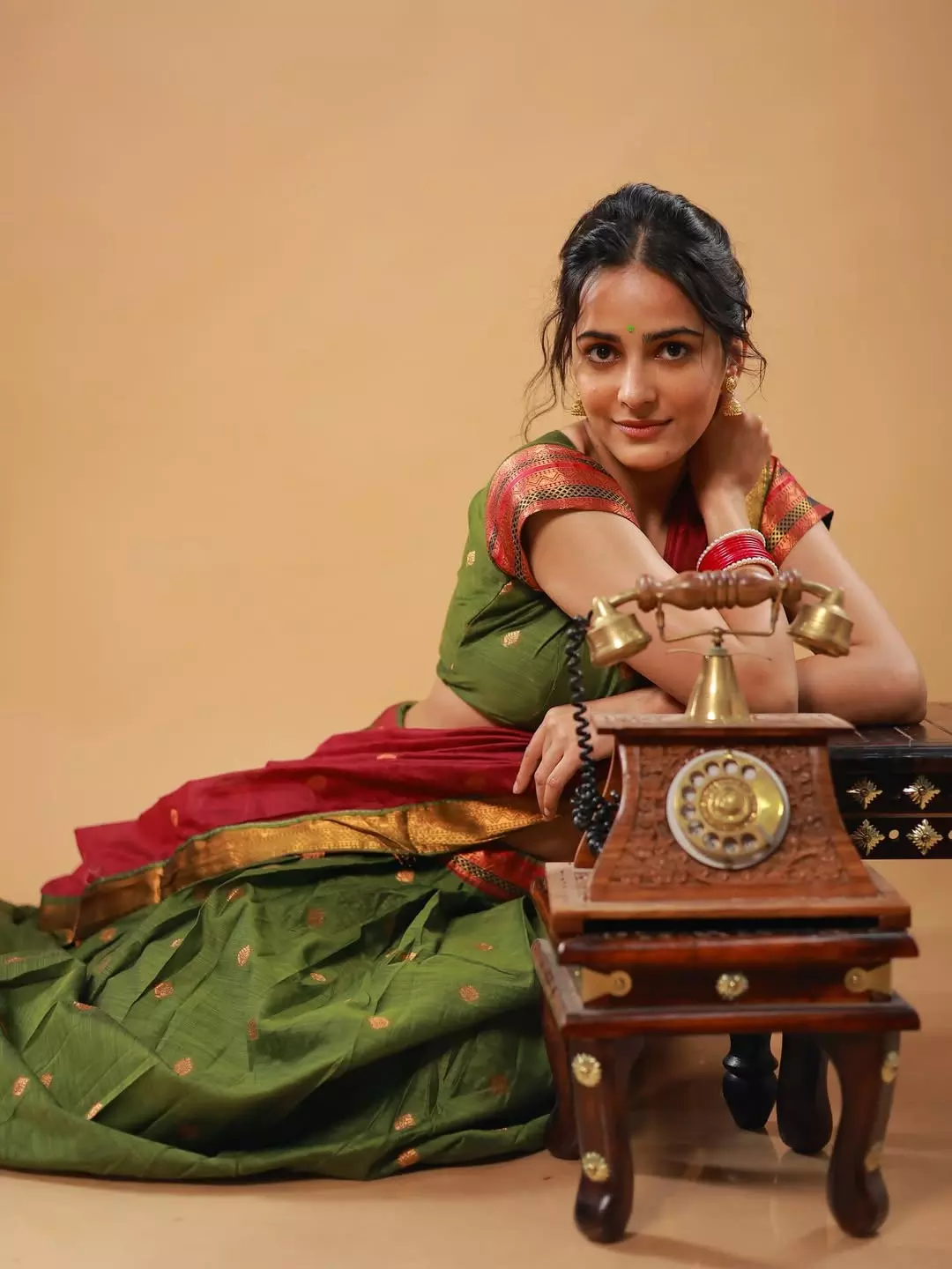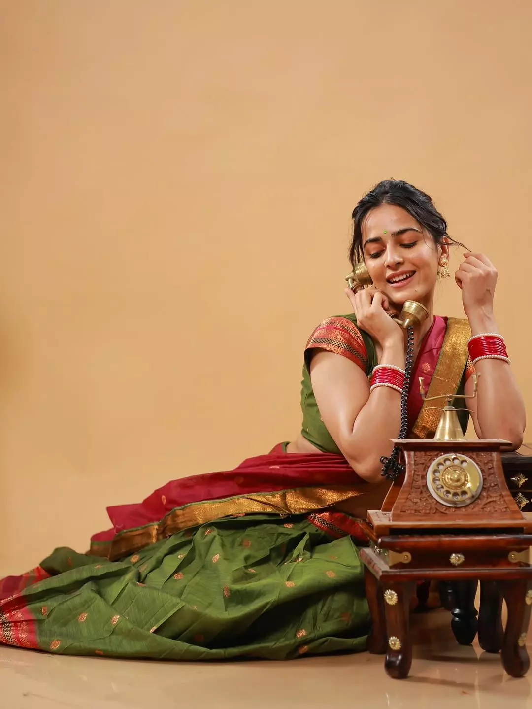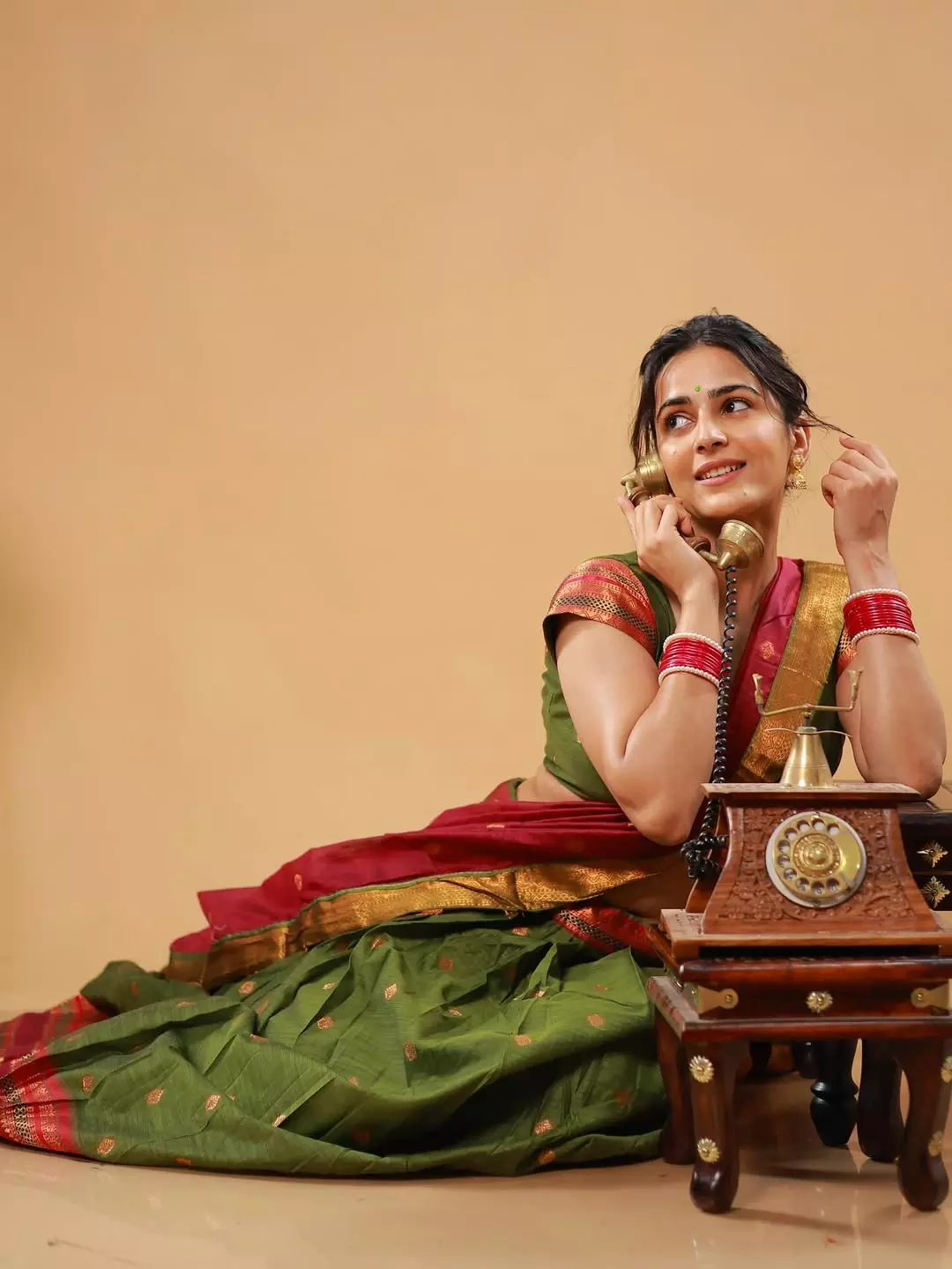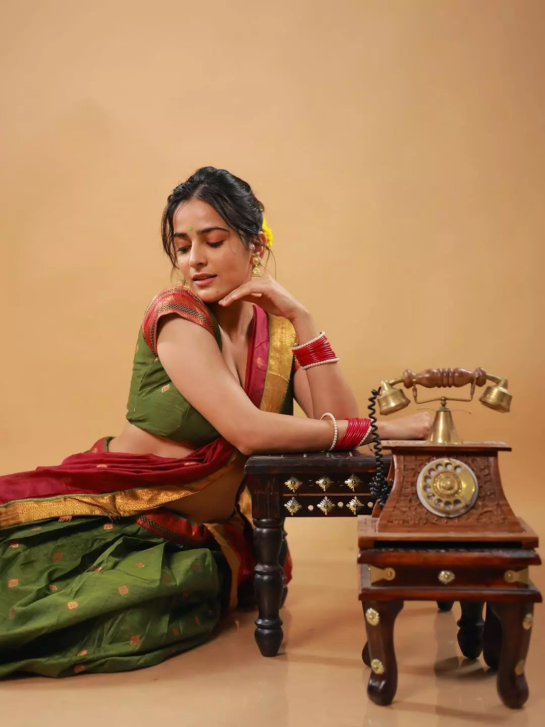 Khushboo Chaudhary shared a graceful post on Instagram on August 2 with the caption “प्रियतम.” She appeared in a traditional saree in rich shades of green and red. The saree had golden borders that added a festive touch to her look. She paired it with a matching green blouse with red sleeves, creating a balanced style. Her accessories included red bangles, a pearl bracelet, and small golden jhumkas.