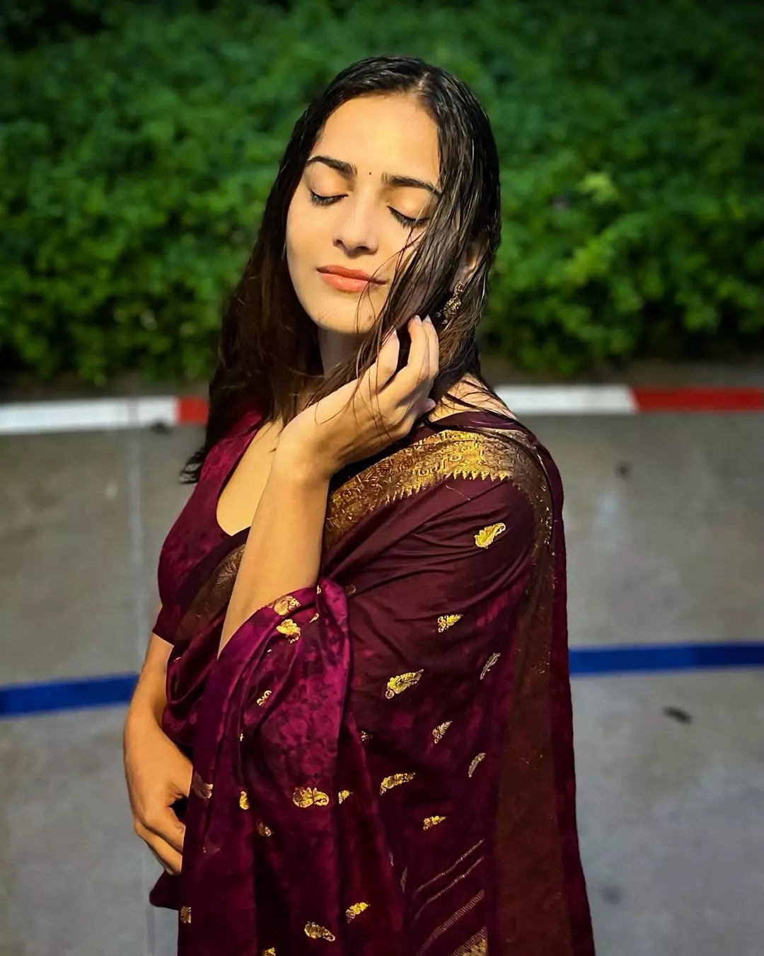 In her caption, Khushboo also gave credit to the team behind her look. The saree was designed and styled by “@vinnu-_baby9.” Her makeup and hairstyle were done by “@raniaruna027.” The photography was done by “@infinite.studio-_.”