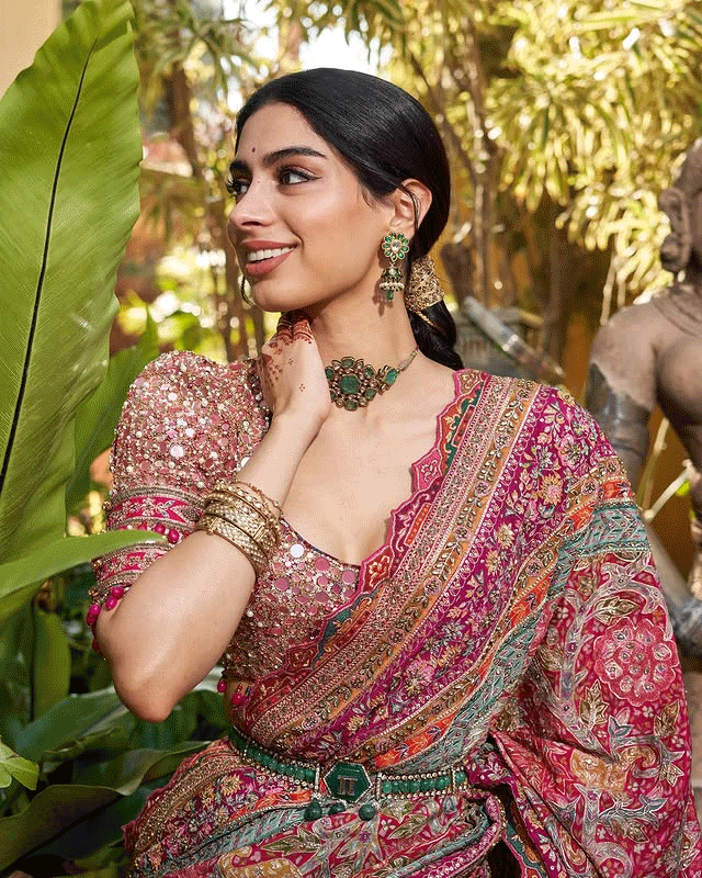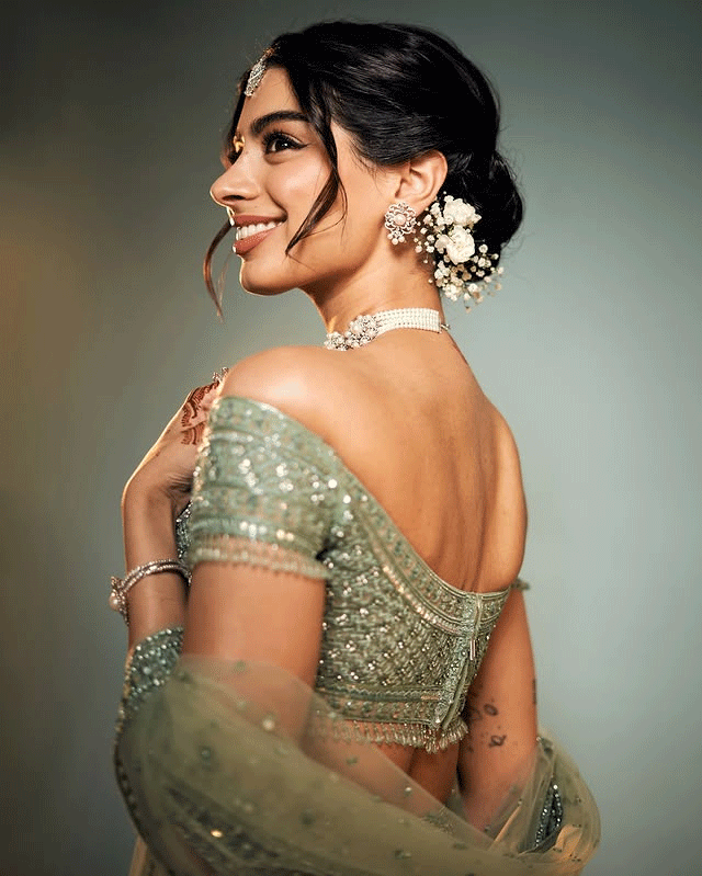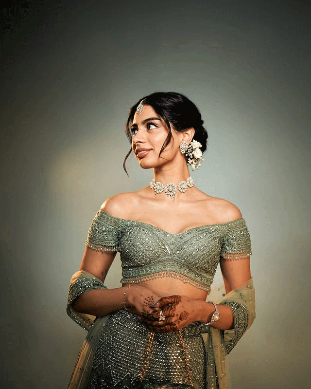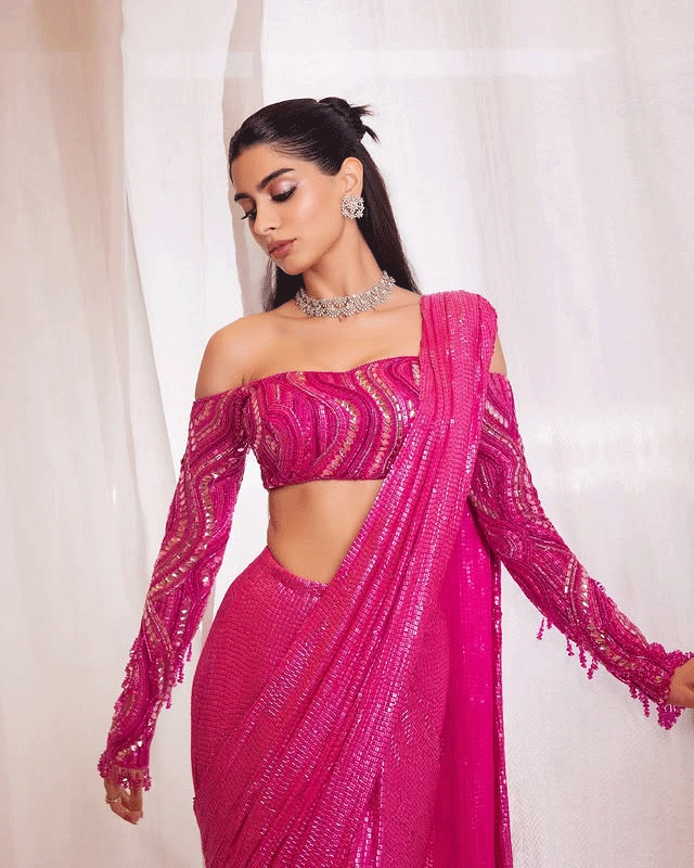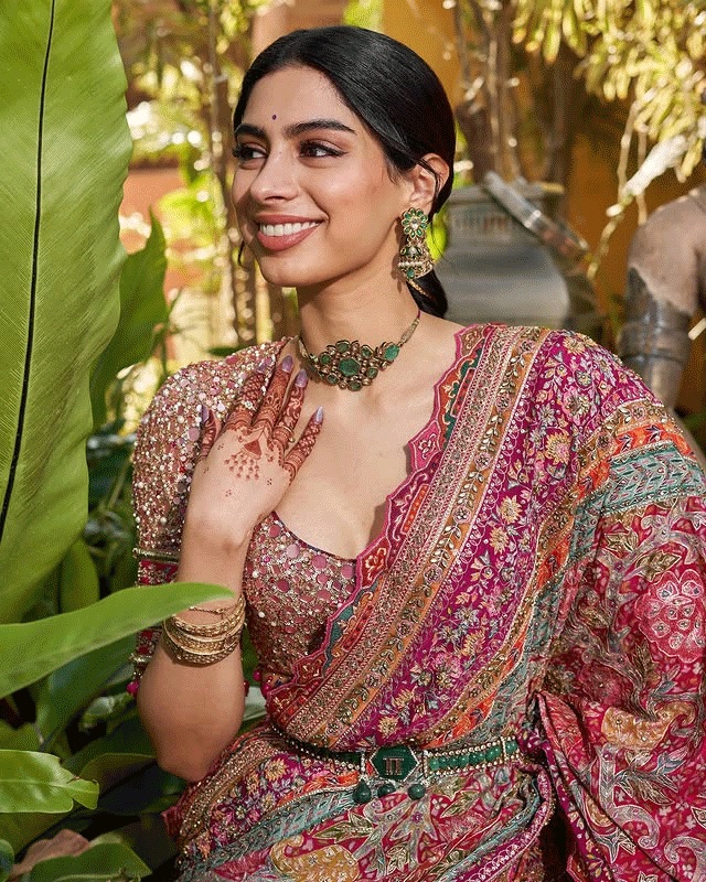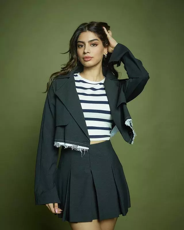 With her hair pulled back in a slick ponytail and makeup that highlights her bold lips and flawless skin, Khushi exudes confidence and poise. The lighting and gradient background enhance the drama of the look, giving fans a glimpse into her evolving fashion identity. Whether she’s channeling high couture or street style, Khushi continues to prove she’s not just another star kid , she’s a style icon in the making.