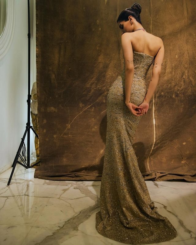 Khushi Kapoor stands out for her love of gothic, grunge, and ashion statements. She experiments with dark tones, dramatic silhouettes, and edgy accessories that align with her rockstar persona. She wore a cape set and pants in her recent picture. Her dress brings traditional bridal looks into a modern space. The design shows confidence and a fresh take on Indian style.