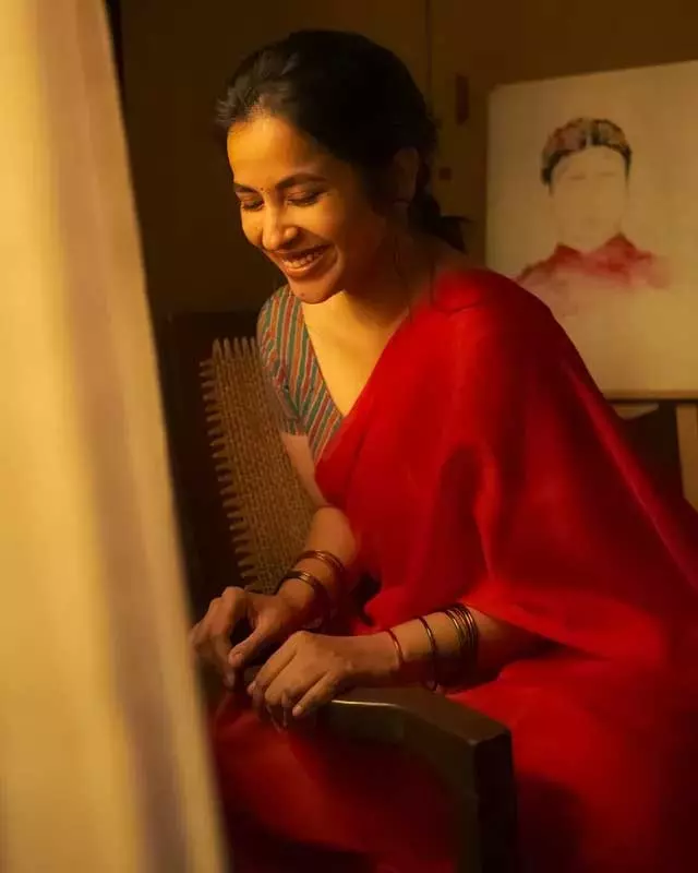 Komalee Prasad recently shared a heartfelt picture on Instagram that captured the attention of many. She is seen dressed in a bright red saree with a gentle smile. She sits gracefully. The photo was taken by @anuragkamilla and the caption adds even more charm: