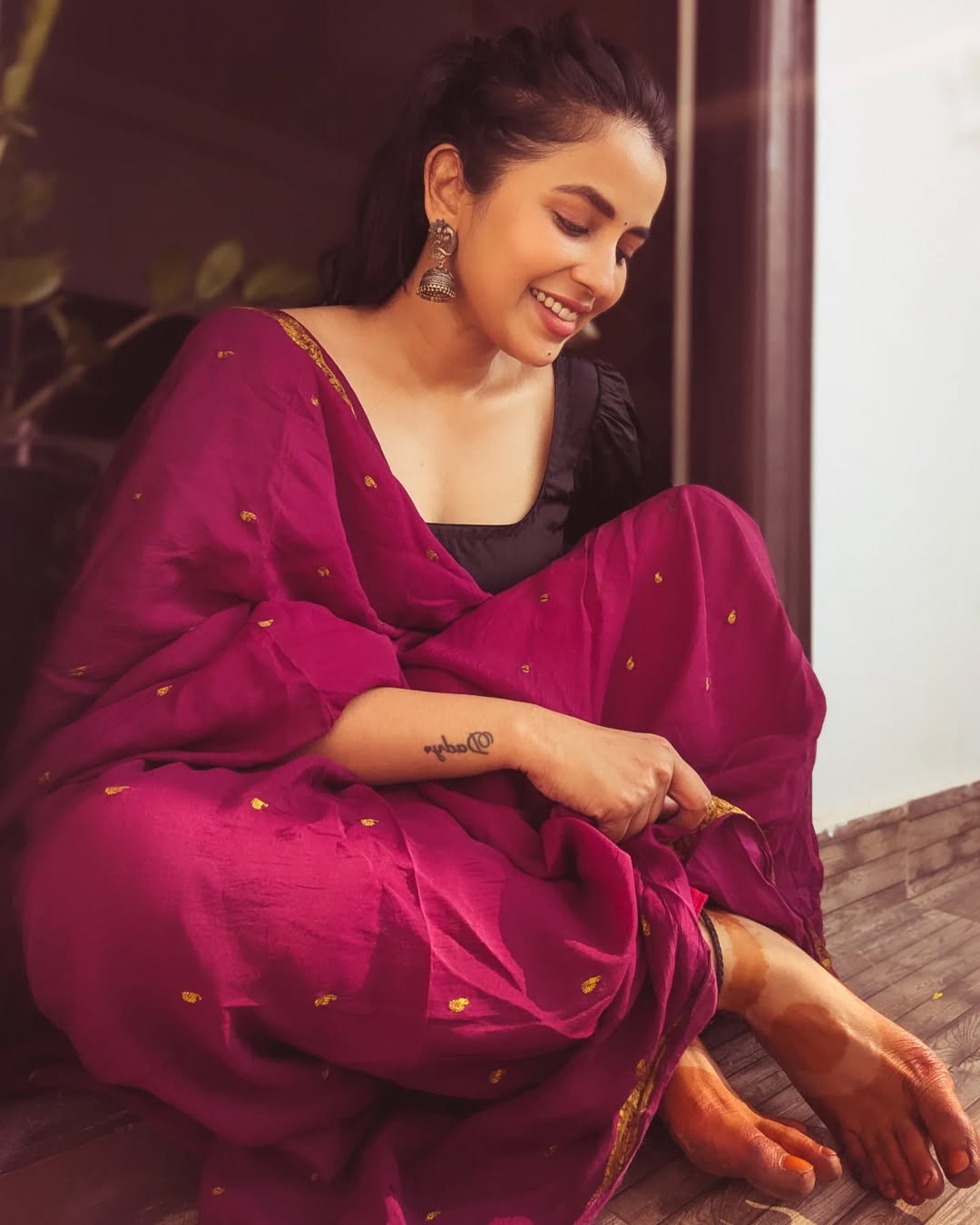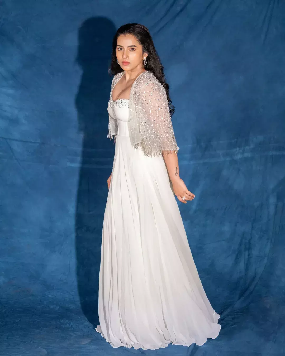 Komalee Prasad shared a graceful picture on Instagram. She wrote in the caption, “Draped in dreams, desires and stardust 🤍✨”.