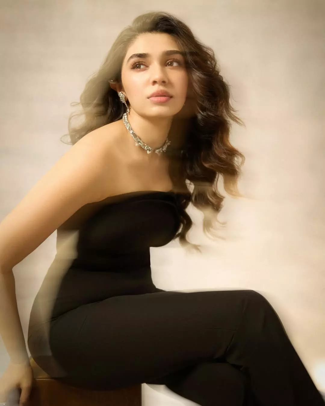 By: Tupaki Desk | 14 April 2026 11:49 PM ISTKrithi Shetty looked absolutely mesmerizing in a sleek black strapless gown that highlighted her graceful shoulders and flowing wavy hair. With a sparkling choker necklace and matching earrings, the young actress gave a soft, dreamy expression that perfectly matched her caption: “Living in a dream ”.