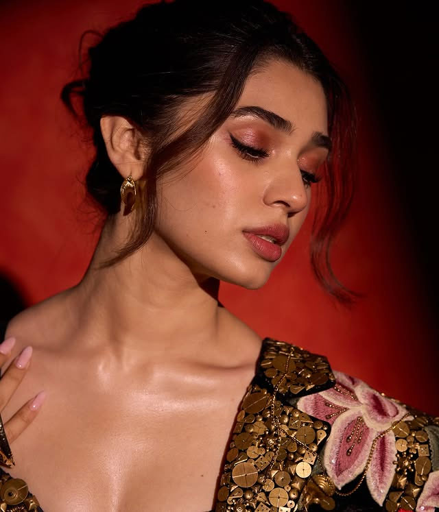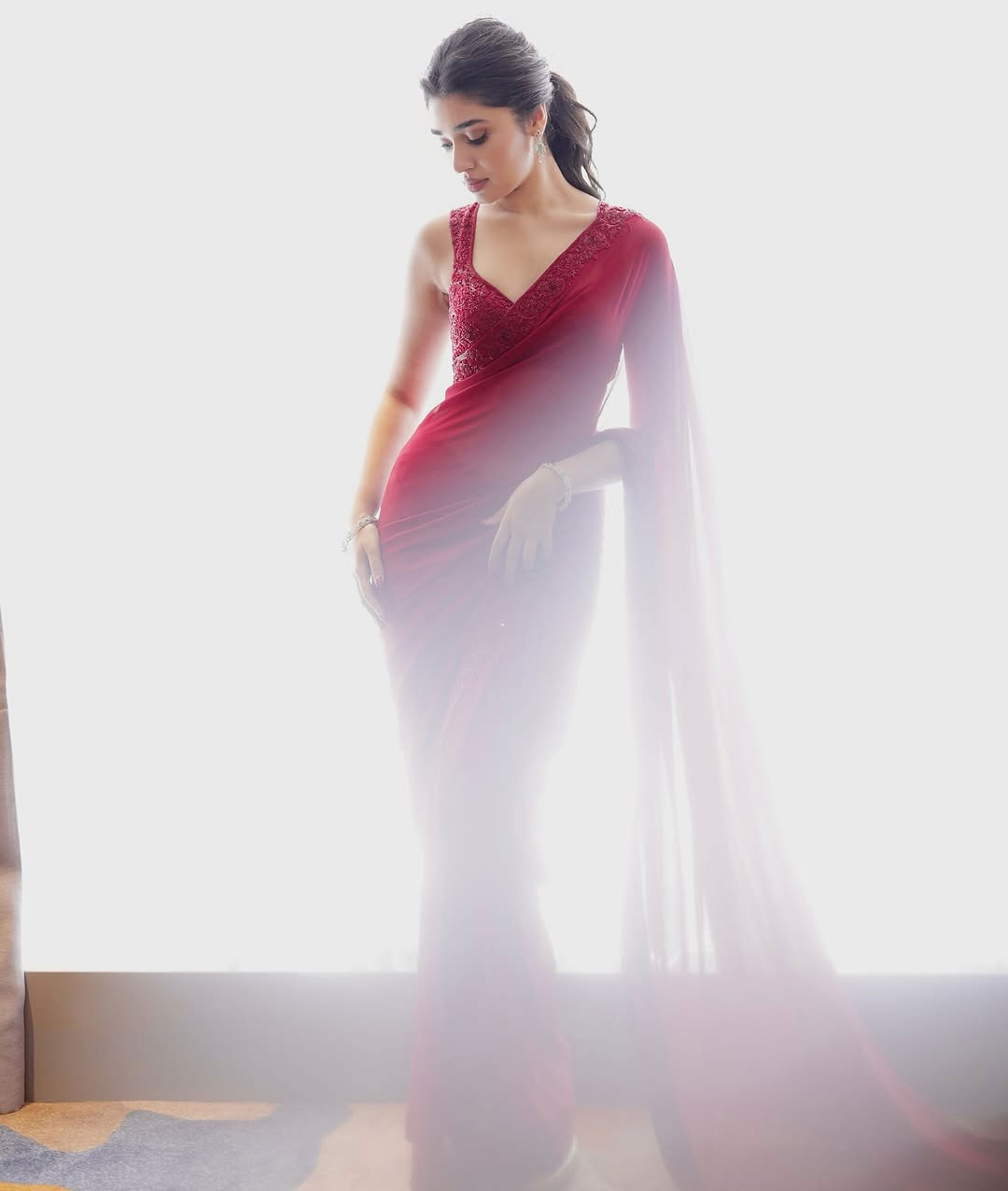 Krithi Shetty looks adorable in a red saree designed by Dhruvi Panchal, paired with elegant jewellery from Emmadi Silver Jewellery. Styled by Sheefa J. Gilani, the look was brought to life with the help of assistants Shriyaa Mahajann and Amisha Thakkar. The stunning shoot was captured by photographer Vasuki Karkone, with makeup and hair artistry by Kalwon Beauty and Ashis Bogi.