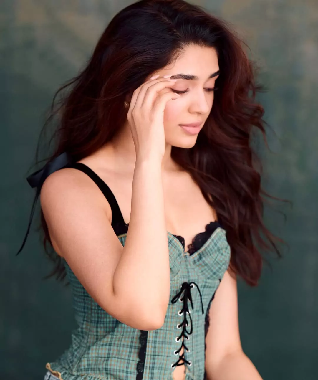 Krithi Shetty shared a fresh picture on her Instagram and she looked happy and radiant in the photo. Her long wavy hair framed her face perfectly. She wore a stylish top with ribbon detailing on the shoulder.
