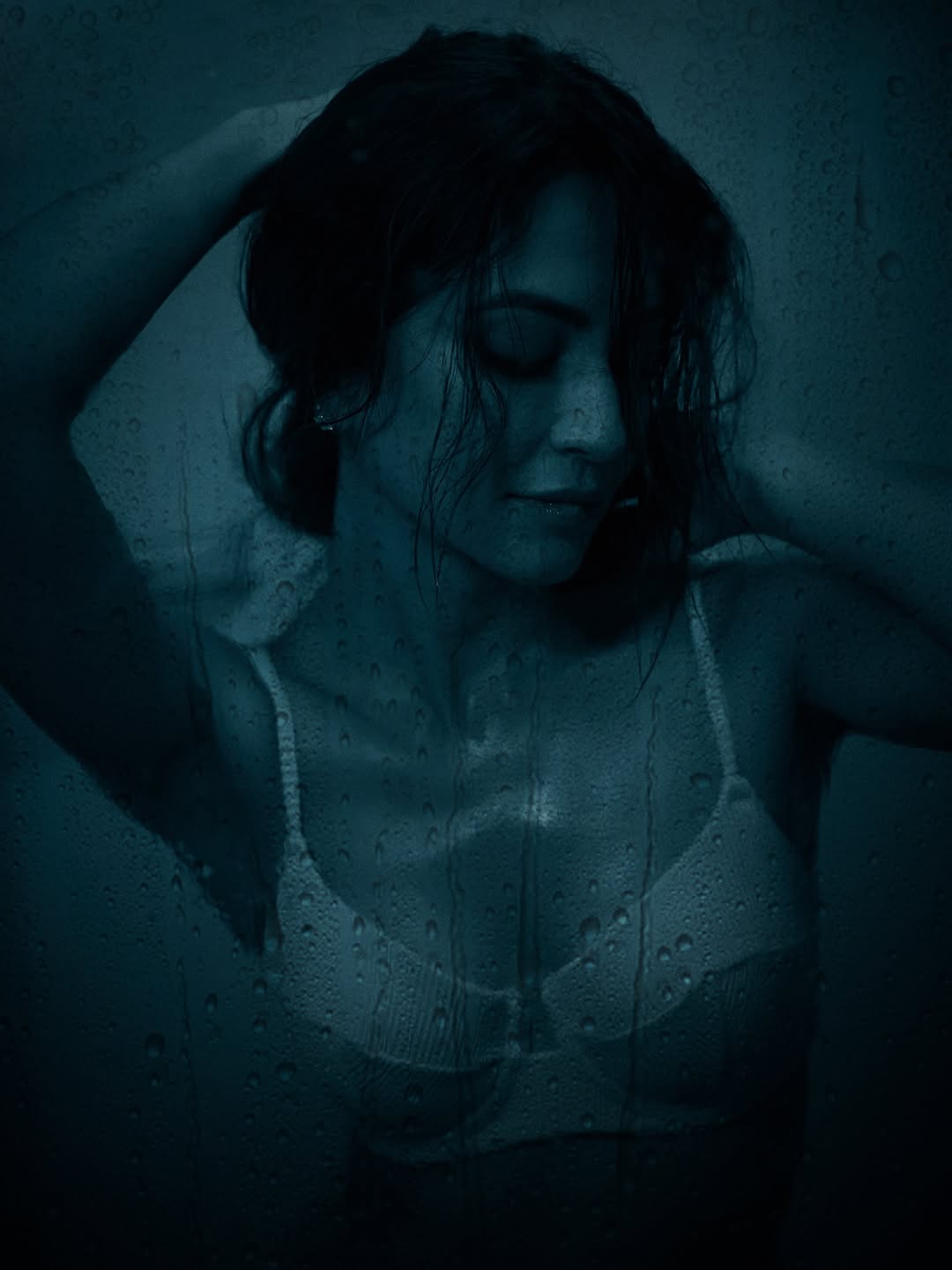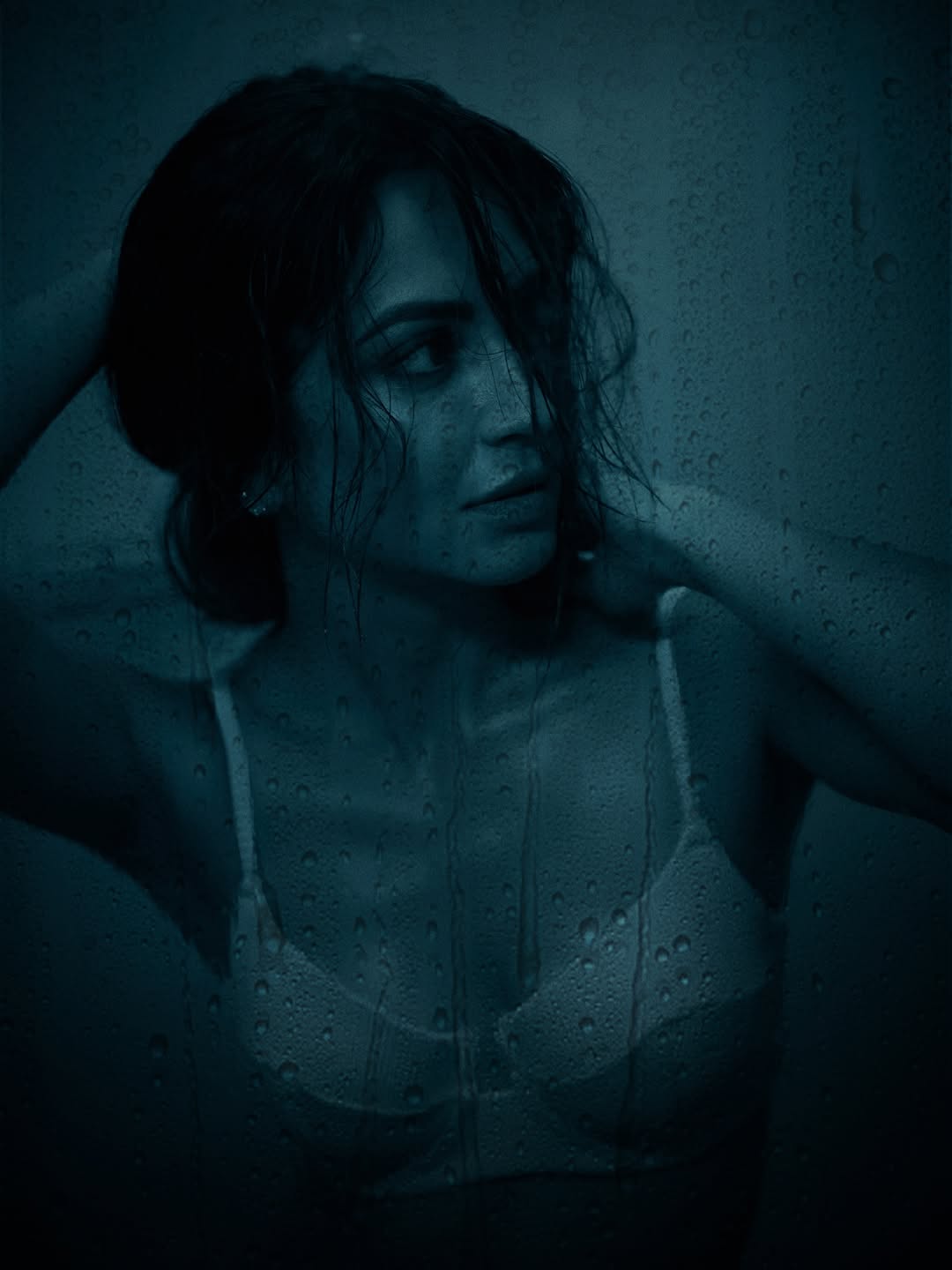 Recently, she shared a photo on Instagram where she is seen posing behind a glass wall with water droplets, giving the picture a dramatic and intense vibe.