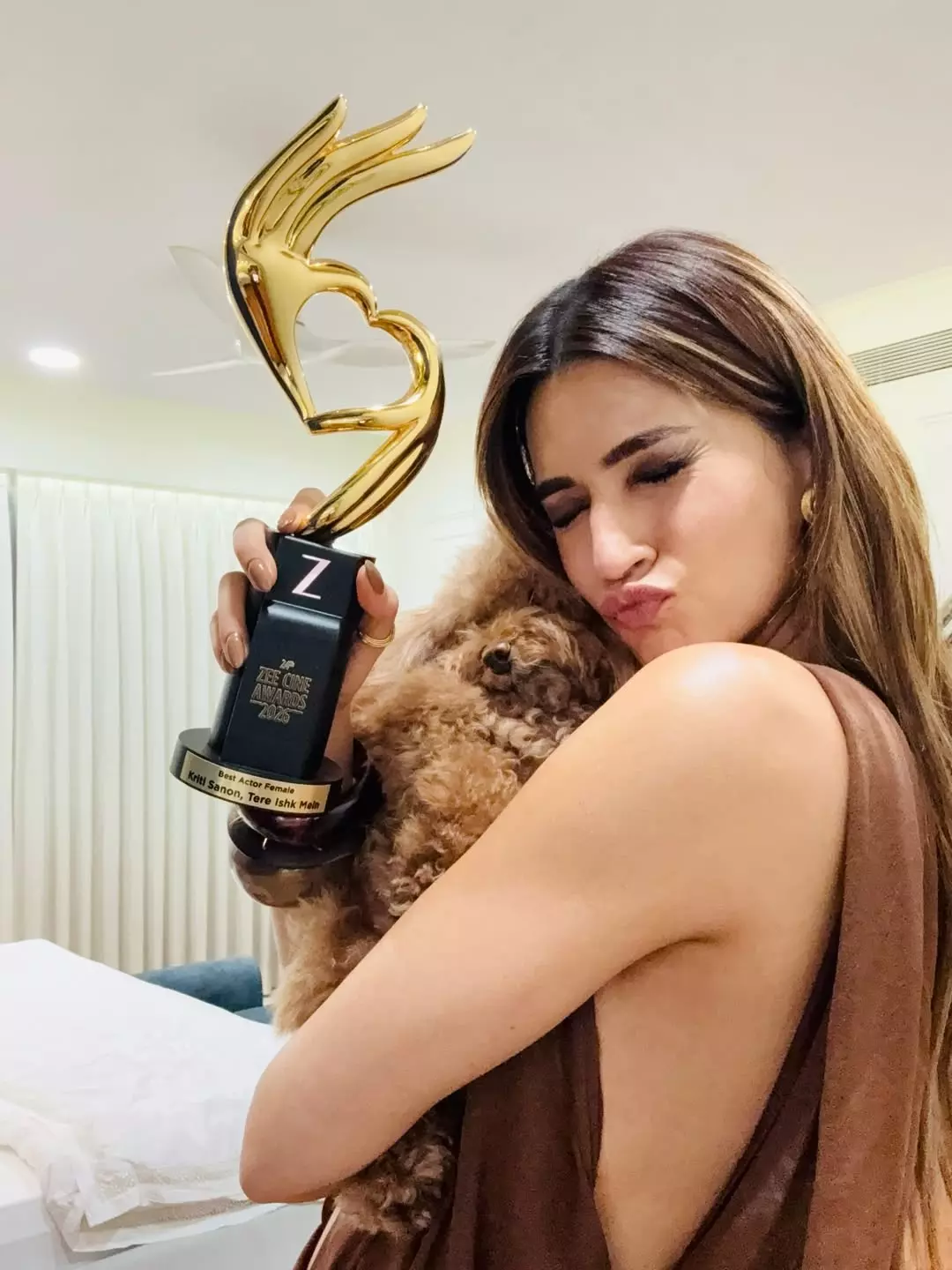 In the photo, Kriti is seen holding her award close along with her pet showing a quiet moment of pride. For her, Mukti is not just a character but a part of her heart. She wrote that Mukti now feels even more special because of the recognition she received. The appreciation came from Zee Cine Awards and Kriti expressed sincere thanks for acknowledging her work and effort.