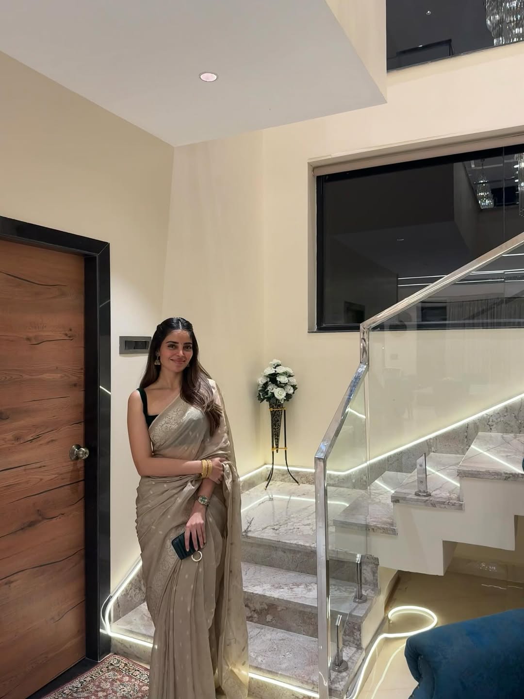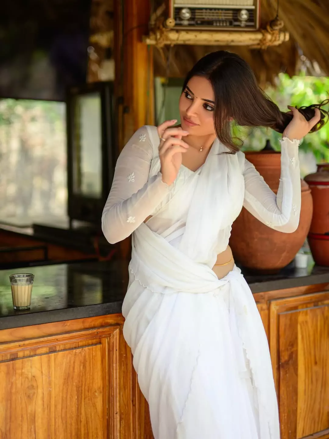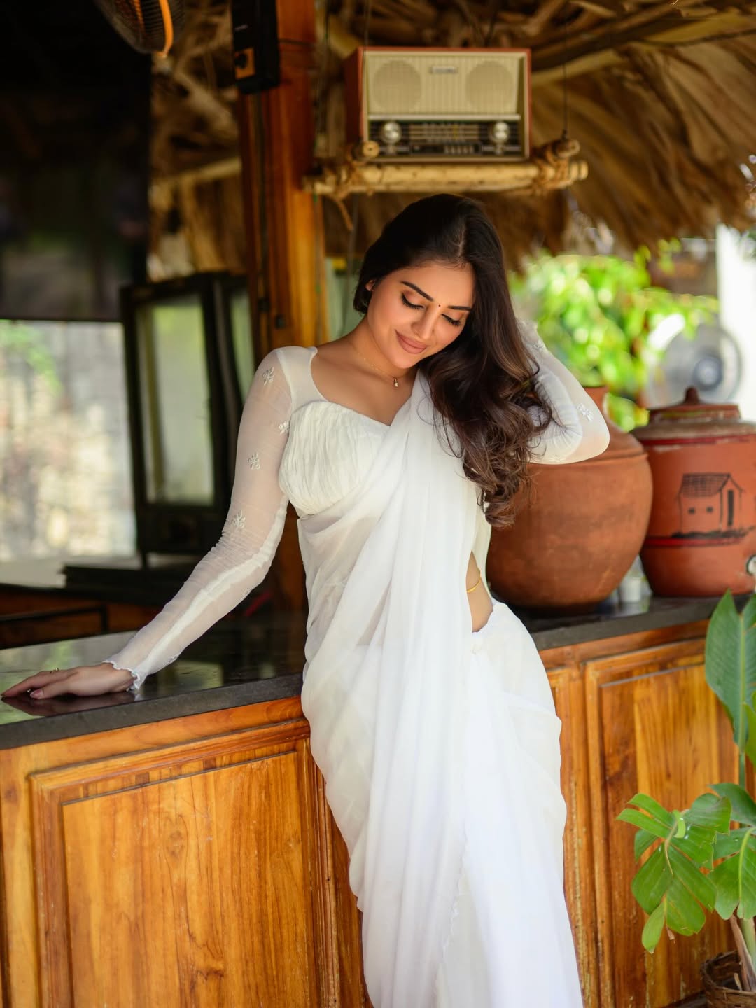 In the post, Kushita is seen wearing a simple and graceful white dress. She is standing in a warm, wooden setting which includes wooden interiors and a traditional setup. Along with the photos, she added a caption saying, “Let me know which picture do you like more.”