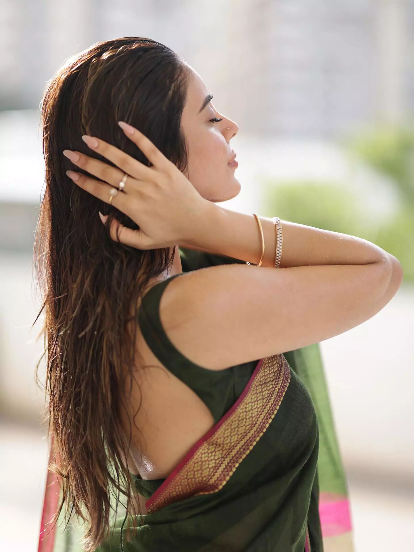Her feed bursts with glamorous shots—bold party dresses, chic casuals, elegant traditional attire, fitness glimpses, travel vibes from Thailand and the US