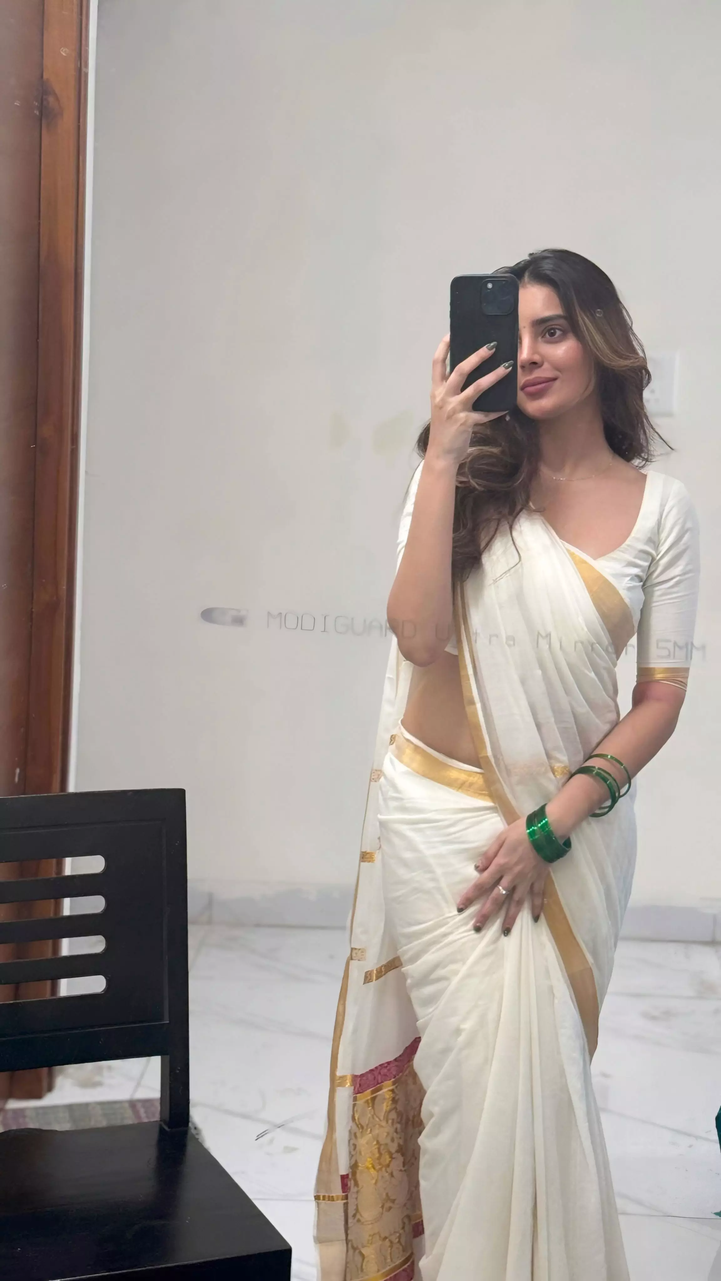 The image stands as both a celebration of Kallapu’s sartorial elegance and a tribute to the artistry of Kerala’s kasavu sarees, inspiring admirers to embrace the beauty of handwoven South Indian craftsmanship.