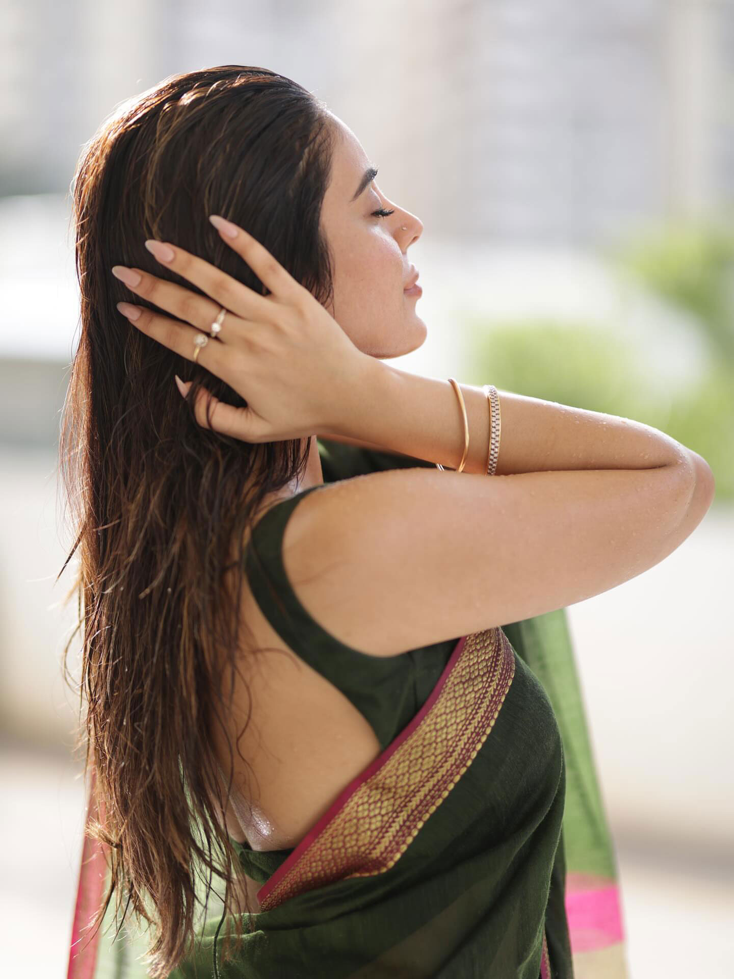 Renowned for her versatile performances in South Indian cinema, Kushitha Kallapu continues to impress fans not only with her acting skills but also her impeccable style. This photograph, part of a curated saree collection, highlights her deep appreciation for traditional attire and her effortless ability to carry it with poise.