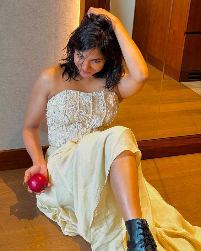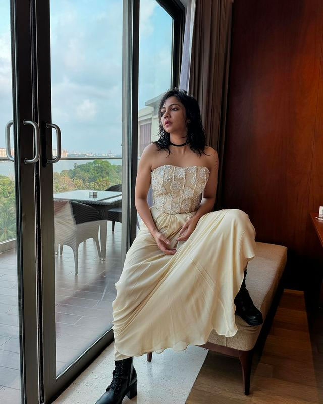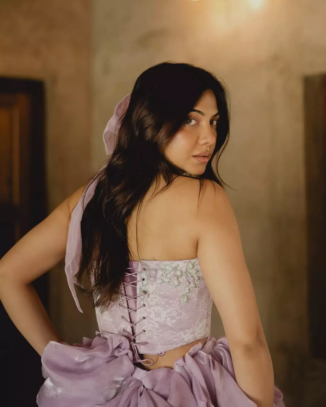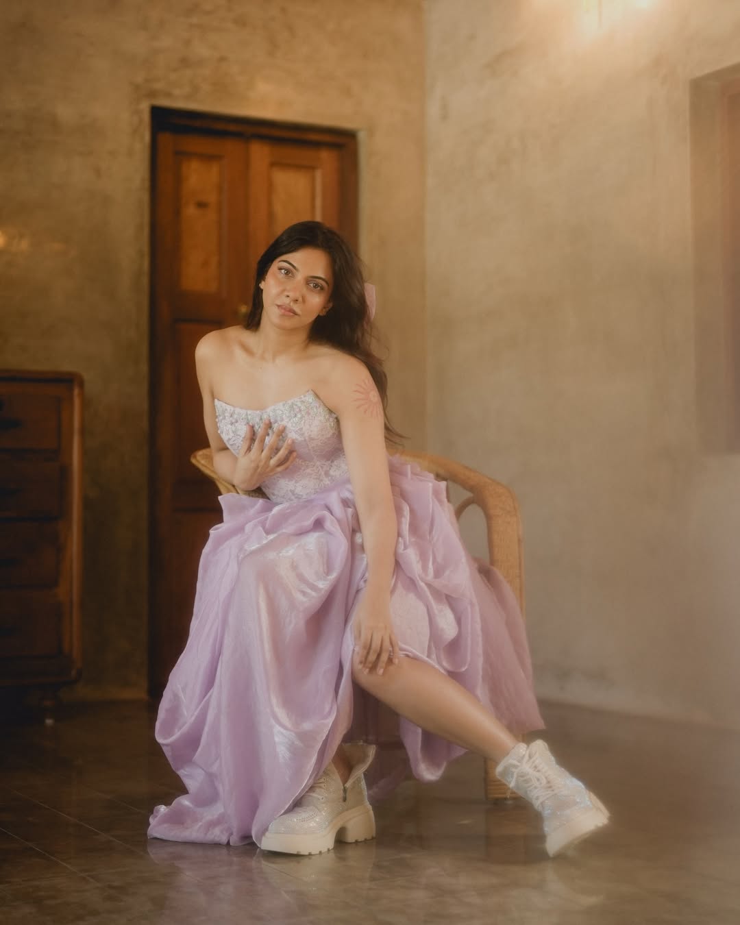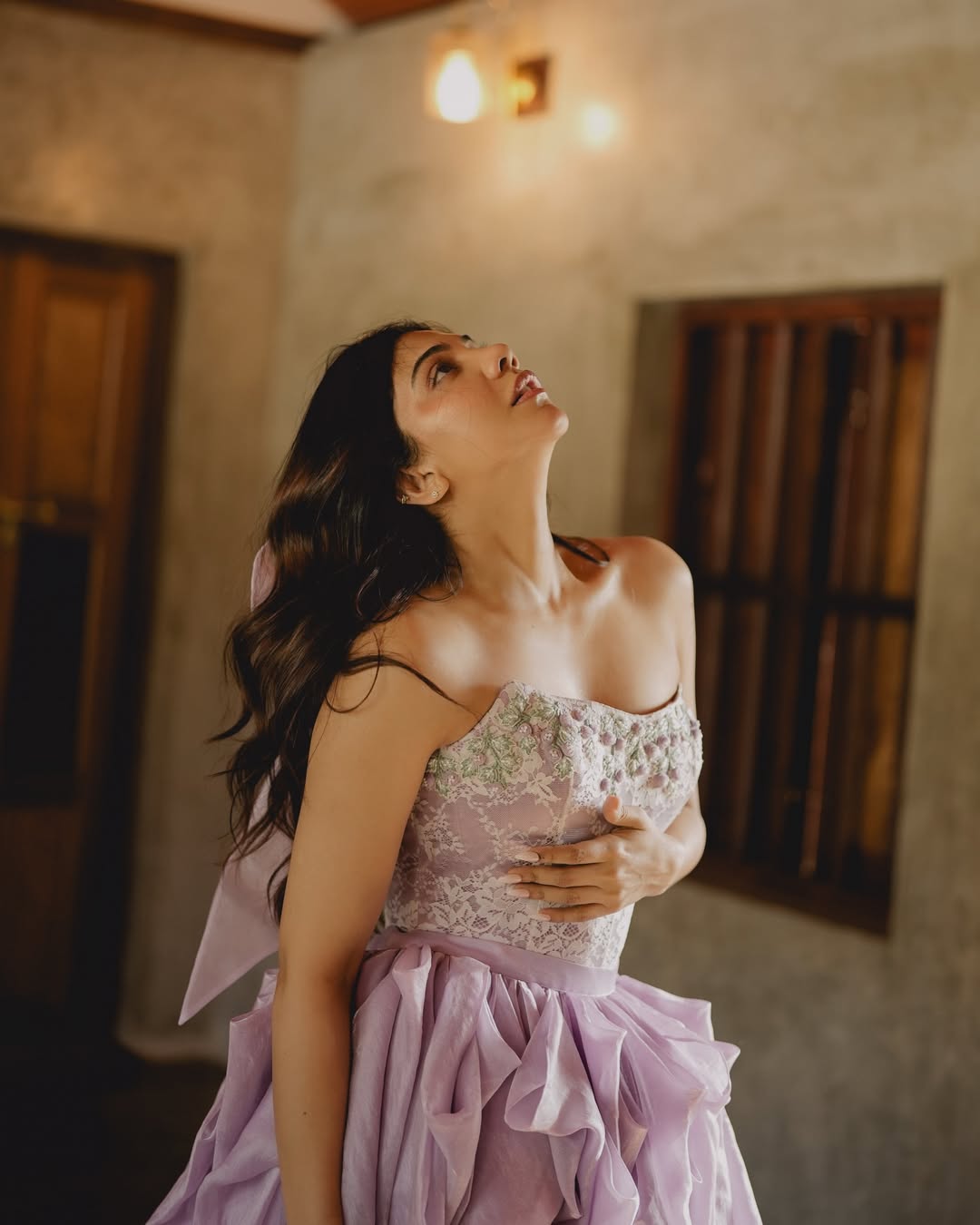Off screen, Madonna continues to captivate as a style muse, admired for her refined yet effortless fashion sensibility. Her wardrobe choices often strike a graceful balance between classic Indian influences and contemporary silhouettes, reflecting a modern aesthetic with timeless appeal. In her latest look, she stuns in a lilac ruffled gown with an intricately embroidered bodice. The gentle pastel tone complements her poise, while the fluid structure and delicate detailing elevate the ensemble with quiet sophistication.
