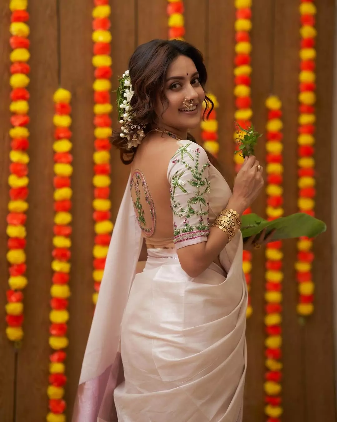 By: Priya Chowdhary Nuthalapti | 9 Aug 2025 1:35 PM ISTMahima Nambiar exudes timeless charm in a graceful white saree paired with a deep green blouse. The blouse�s backless design, with its clean lines and subtle detailing, adds a contemporary twist to this traditional attire.