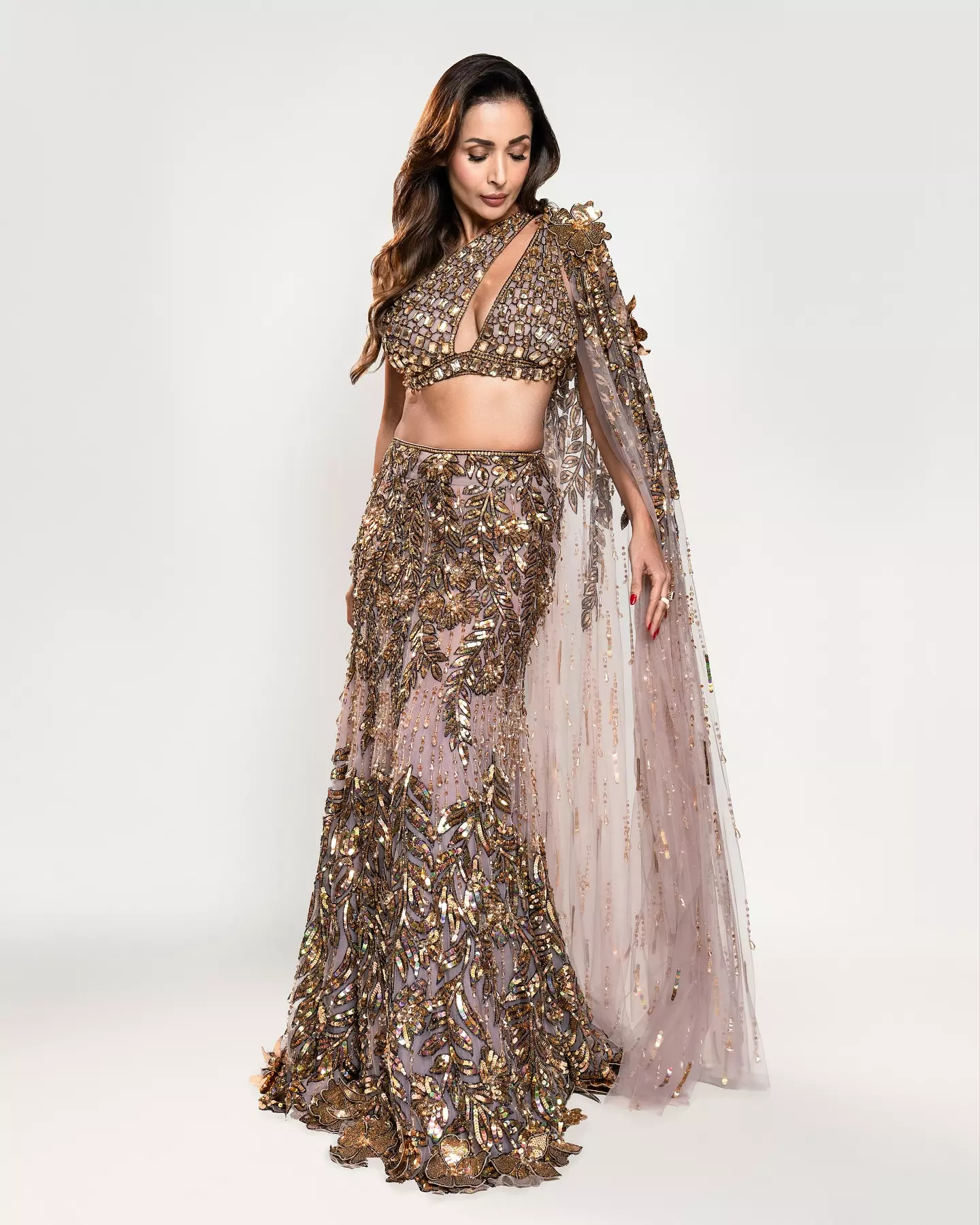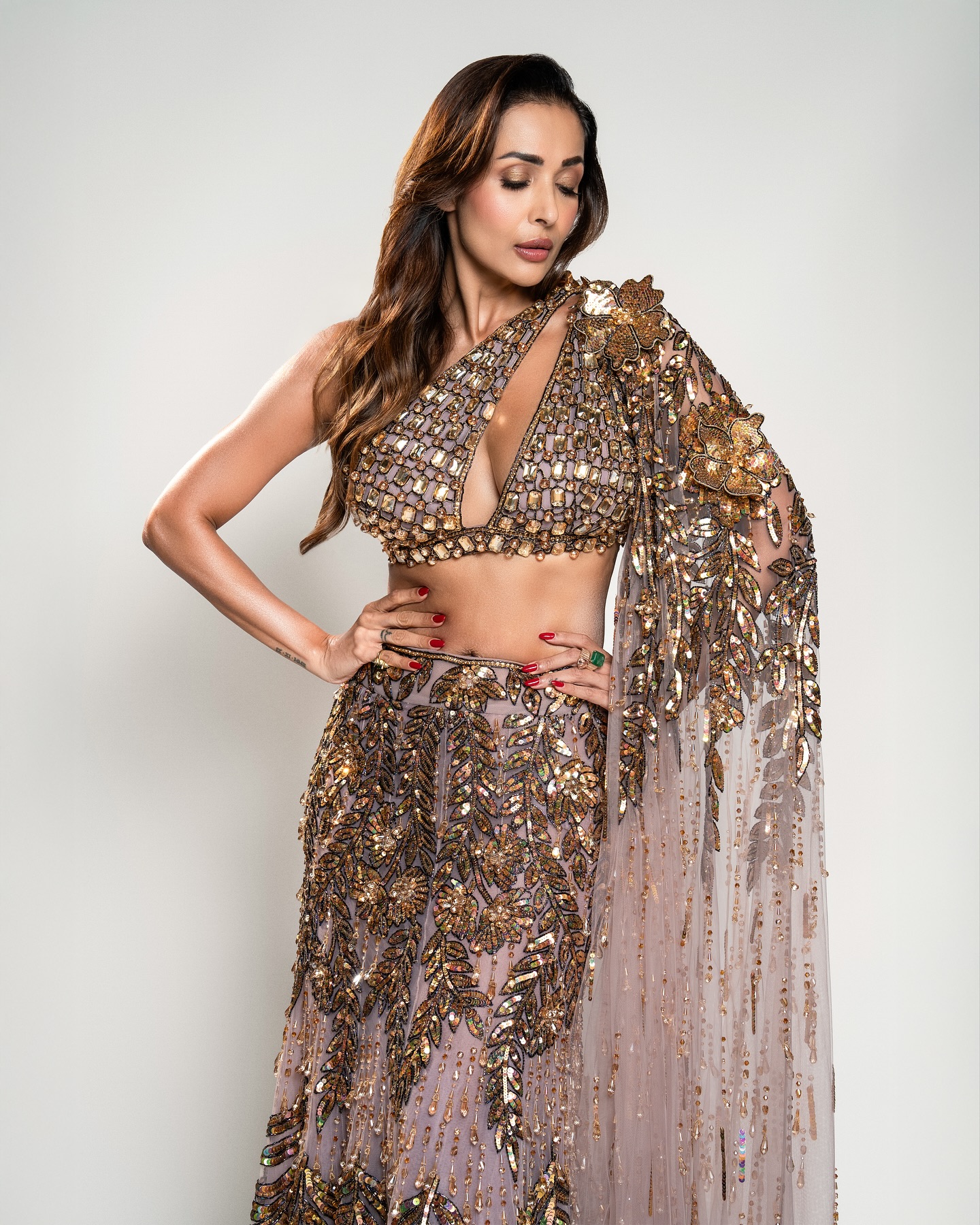 This Diwali, Malaika Arora lit up the celebrations in a resplendent golden outfit by @manishmalhotra05, radiating elegance, warmth, and timeless beauty. Styled to perfection, her look featured flawless makeup by @divyashetty_ and a sleek hairdo by @arvindkumar_hair. Captured in all her festive glory by @muhammadkharbe, Malaika’s Diwali look was nothing short of ethereal.