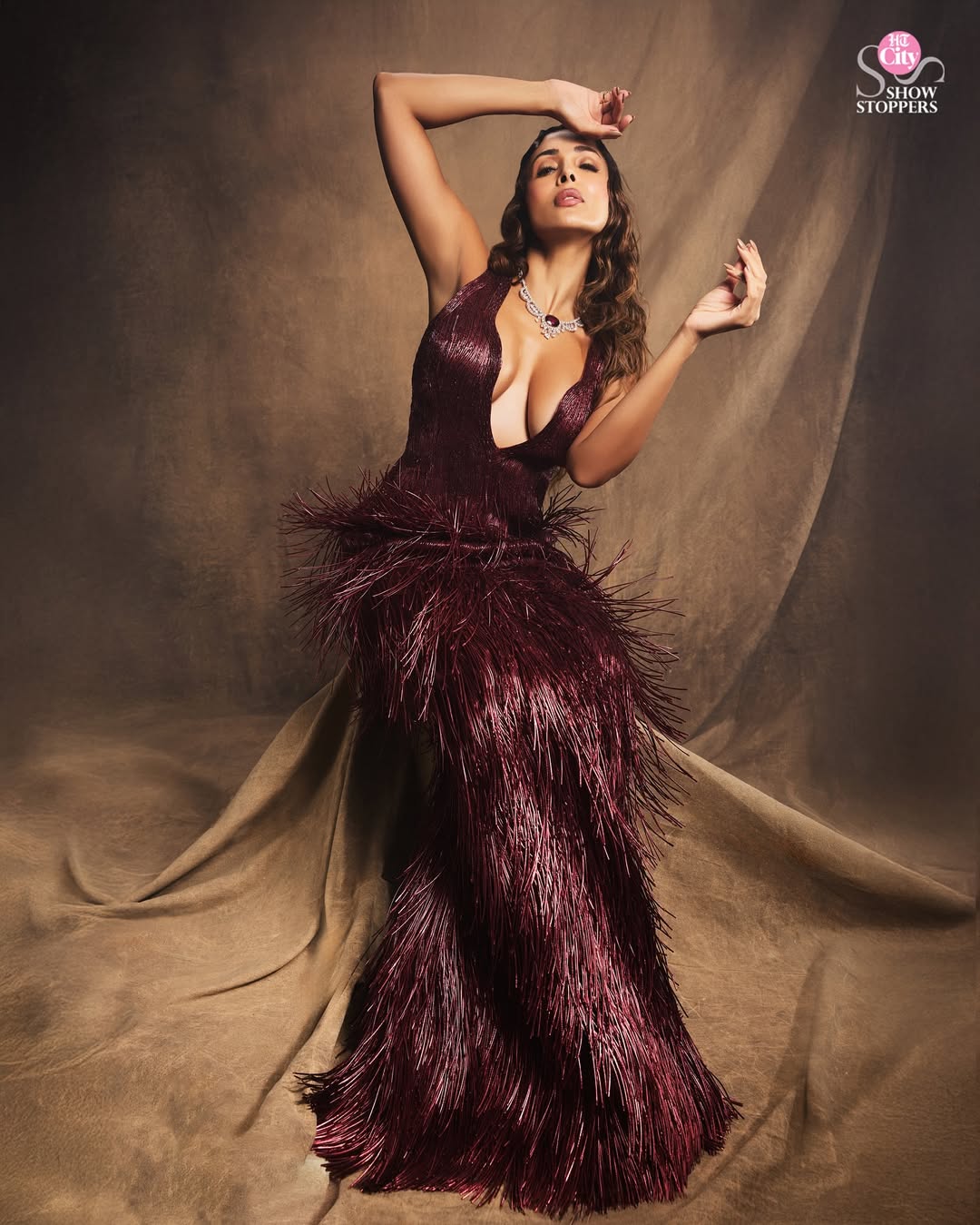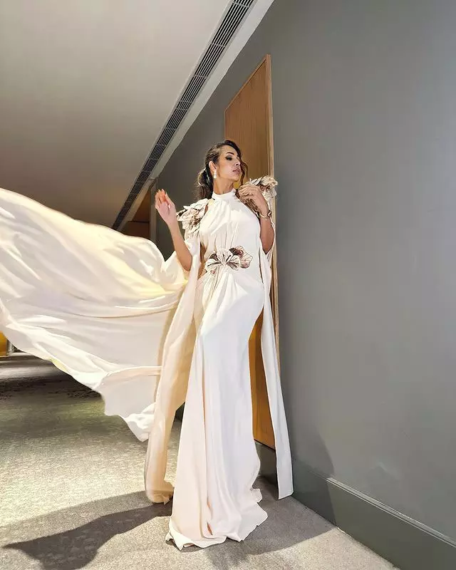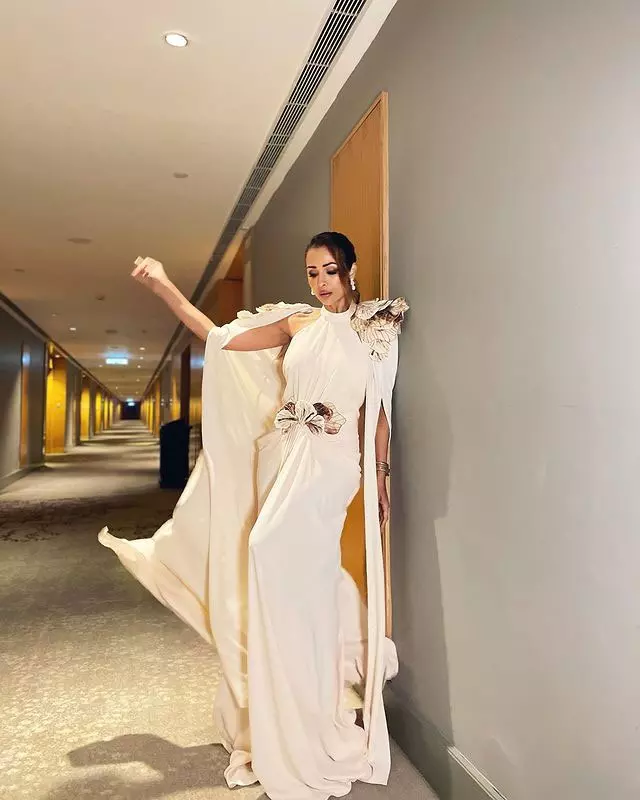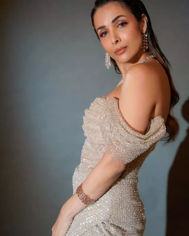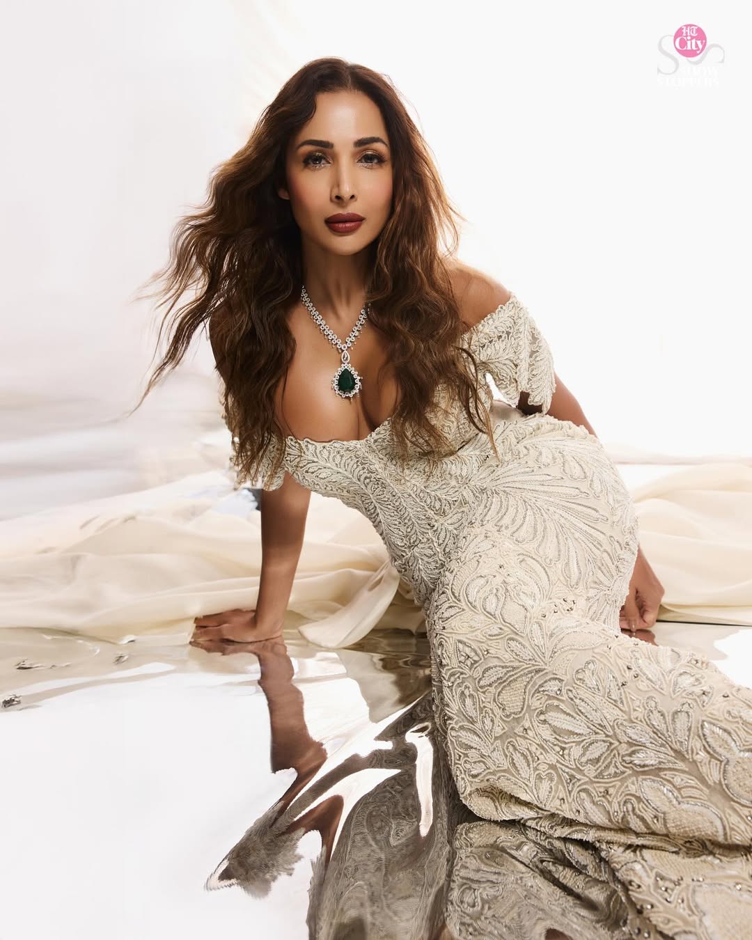 In her latest shoot, Malaika looked ethereal in an elegant off-shoulder gown by designer duo Shantnu & Nikhil. The gown featured intricate embroidery and beadwork, with a sweeping white trail that gave it a touch of drama. She accessorized the look with a sparkling diamond-studded pendant from Gems & Jewels, pulling together a look that was nothing short of regal. The shoot was brought to life by a talented team, including Shara Ashraf, Prayag Mishra, photographer Abheet Gidwani, along with a skilled styling and makeup crew.