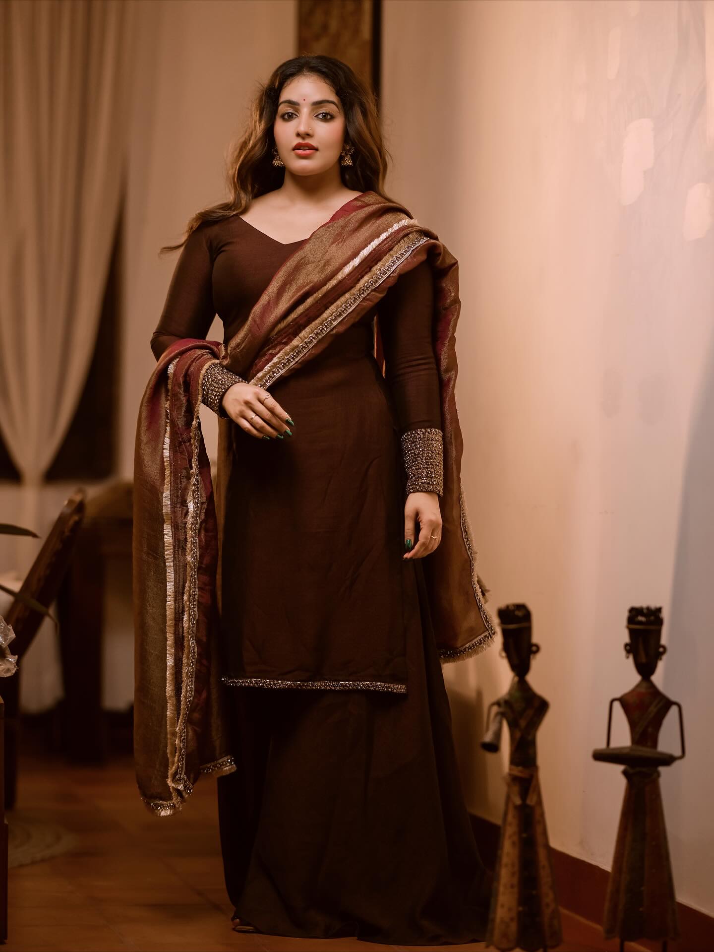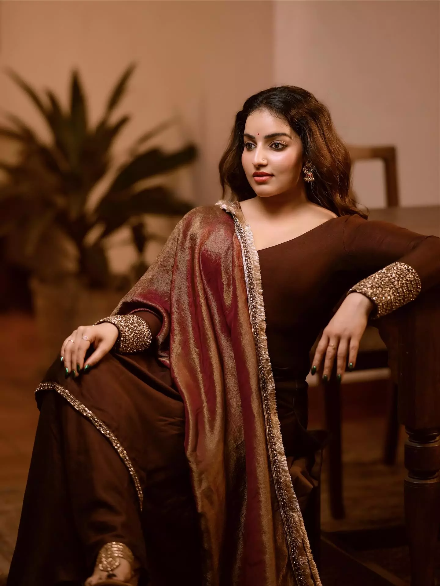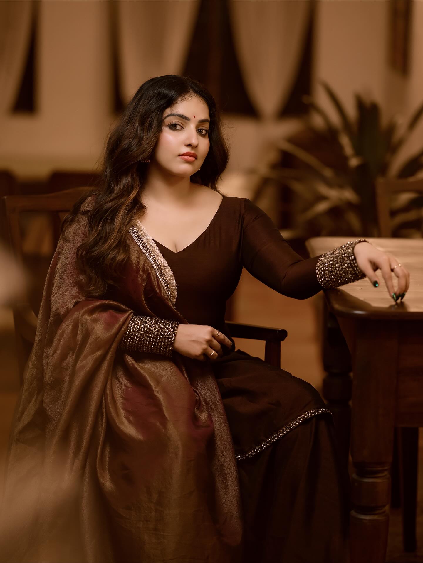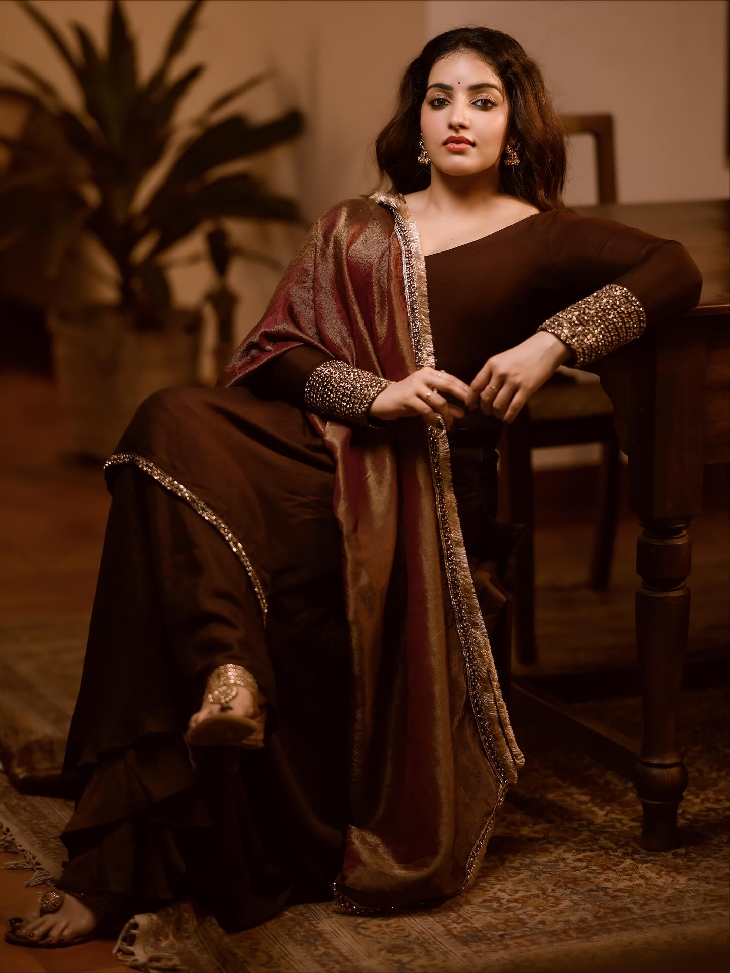 Malavika C Menon Radiates Royal Charm in a Brown Lehenga