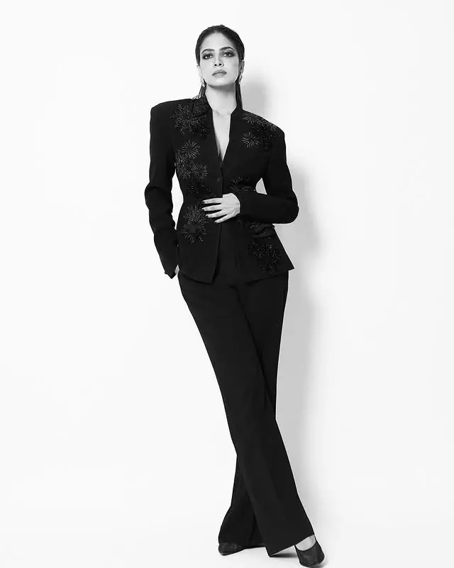 She recently celebrated 25 years of Lakm� Fashion Week. She wore a black embroidered blazer with matching trousers.