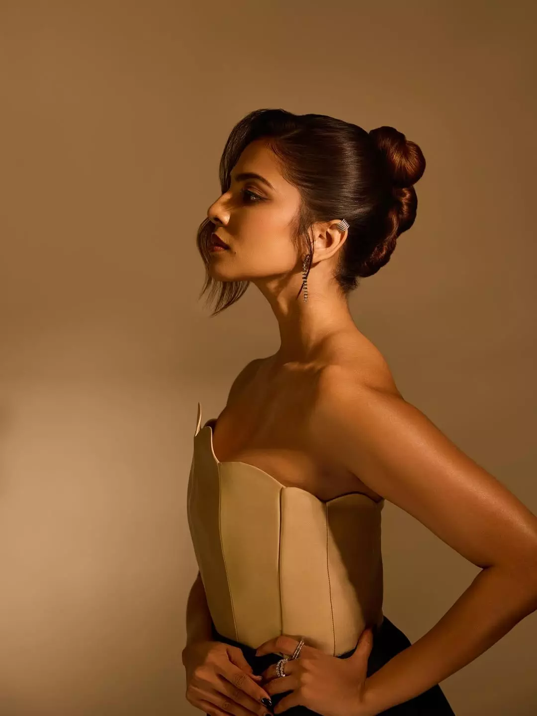 Malavika Mohanan is known for her style and has recently shared a captivating image on Instagram. In the picture, Malavika is seen striking a bold, confident pose in a stylish dark brown blazer paired with high heels by giving off an air of elegance and charm. Her serious yet captivating expression along with the simple yet sophisticated background, highlights her striking features. The image is part of a series posted by the actress on her social media by garnering attention from fans and fellow celebrities alike.