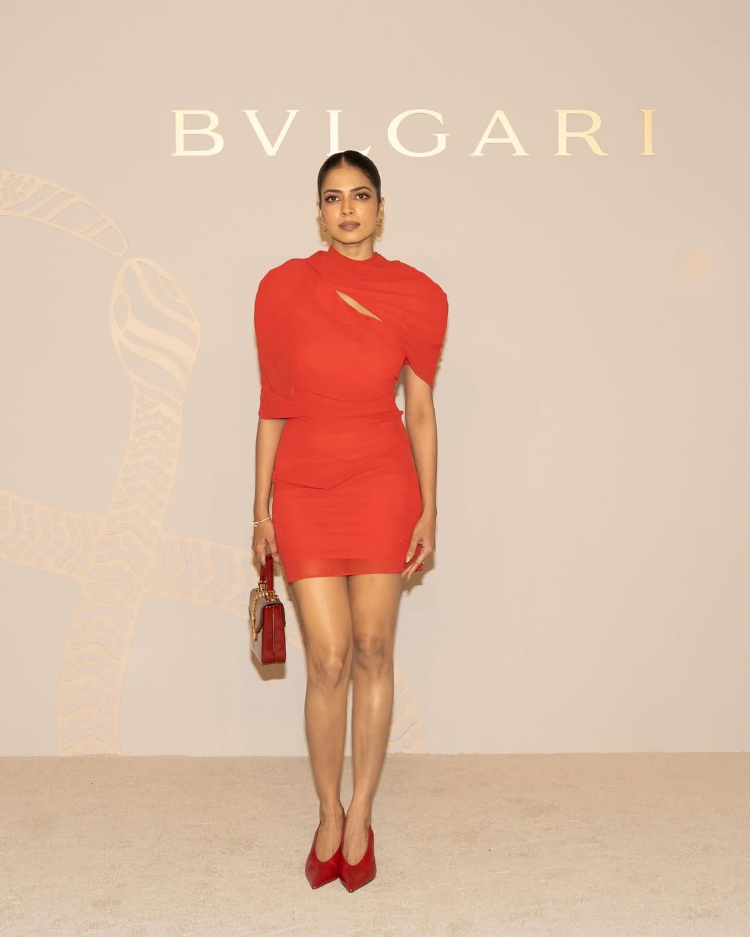 Malavika Mohanan Shines in Red at Bvlgari Serpenti Exhibition