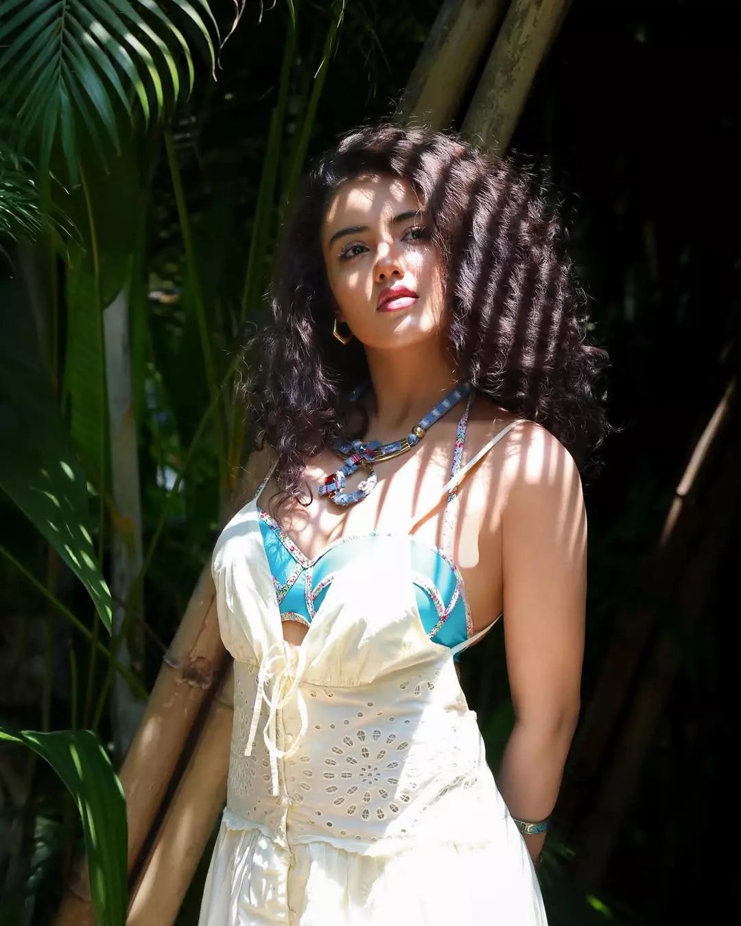 She was recently seen in Sudheer Babu's Harom Hara. But it's not just her acting that stands out it's also her fashion game. In her latest Instagram post, Malavika flaunts a chic look in a turquoise and white dress.