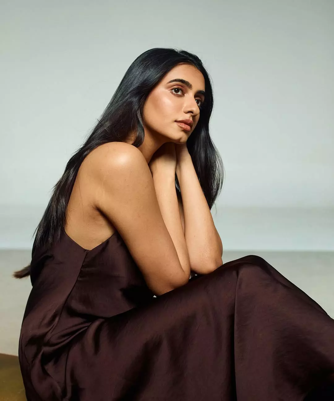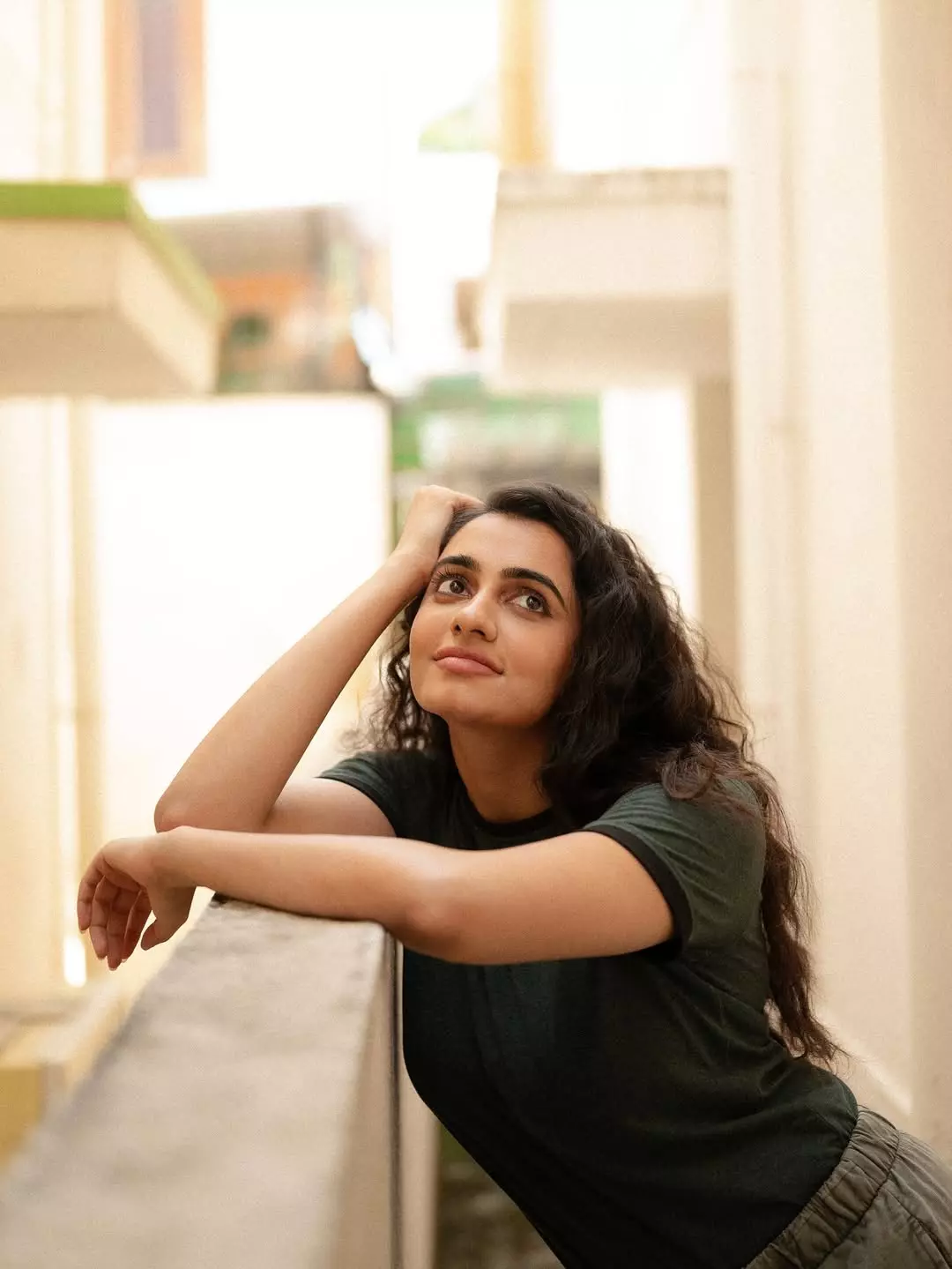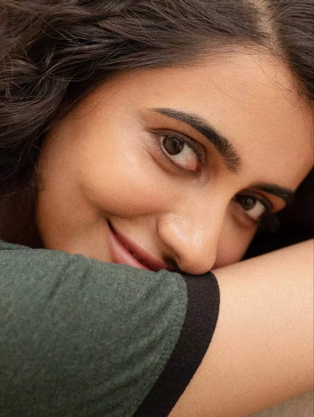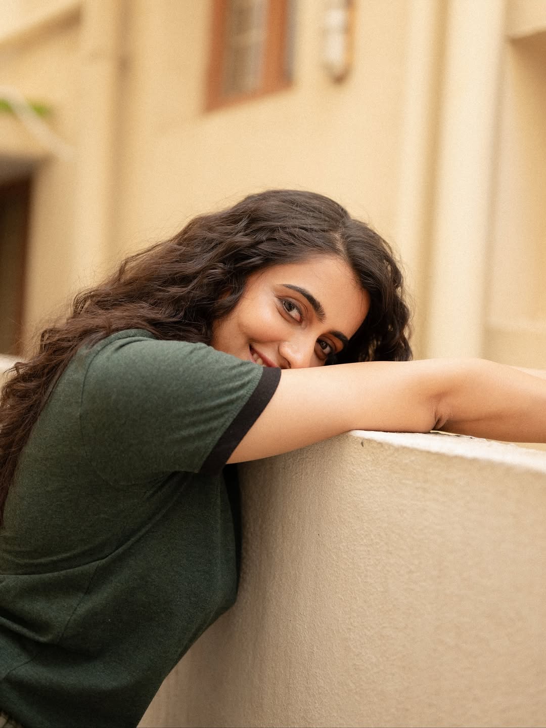 In the picture, she is seen wearing a dark green outfit, styled in a relaxed yet graceful manner. Her natural curls fall freely on her shoulders, adding to the freshness of her look. The caption reads, “Shot by @irst_photography Makeup and hair by @noormakeup.sculpture,” giving credit to the talented team behind her glowing appearance.