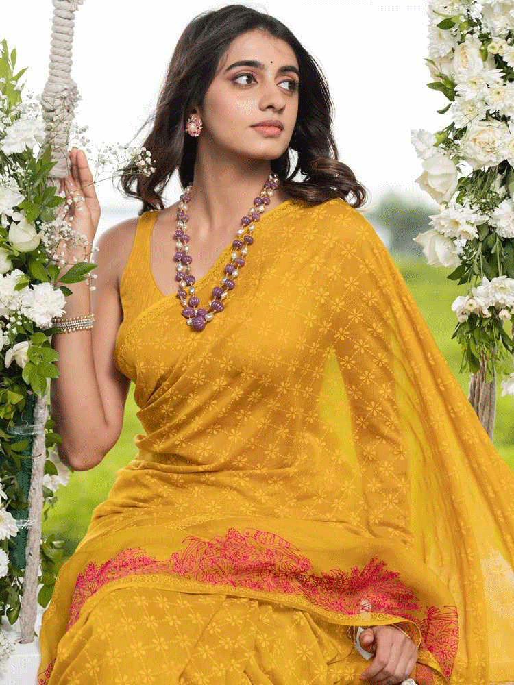 By: Tupaki Desk | 18 Sept 2025 11:55 AM ISTActress Maanasa Choudhary radiates grace and poise in her latest look, draped in a vibrant mustard-yellow saree. The intricate patterns and delicate border work add a touch of elegance, while the subtle blend of traditional craftsmanship with modern styling makes her appearance truly captivating. Paired with a statement necklace and a chic potli bag, her outfit beautifully reflects ethnic sophistication. The floral swing backdrop enhances her aura, making the entire frame look straight out of a classic movie scene.