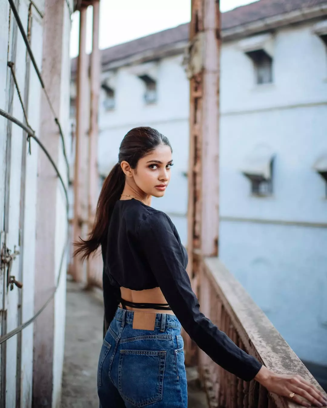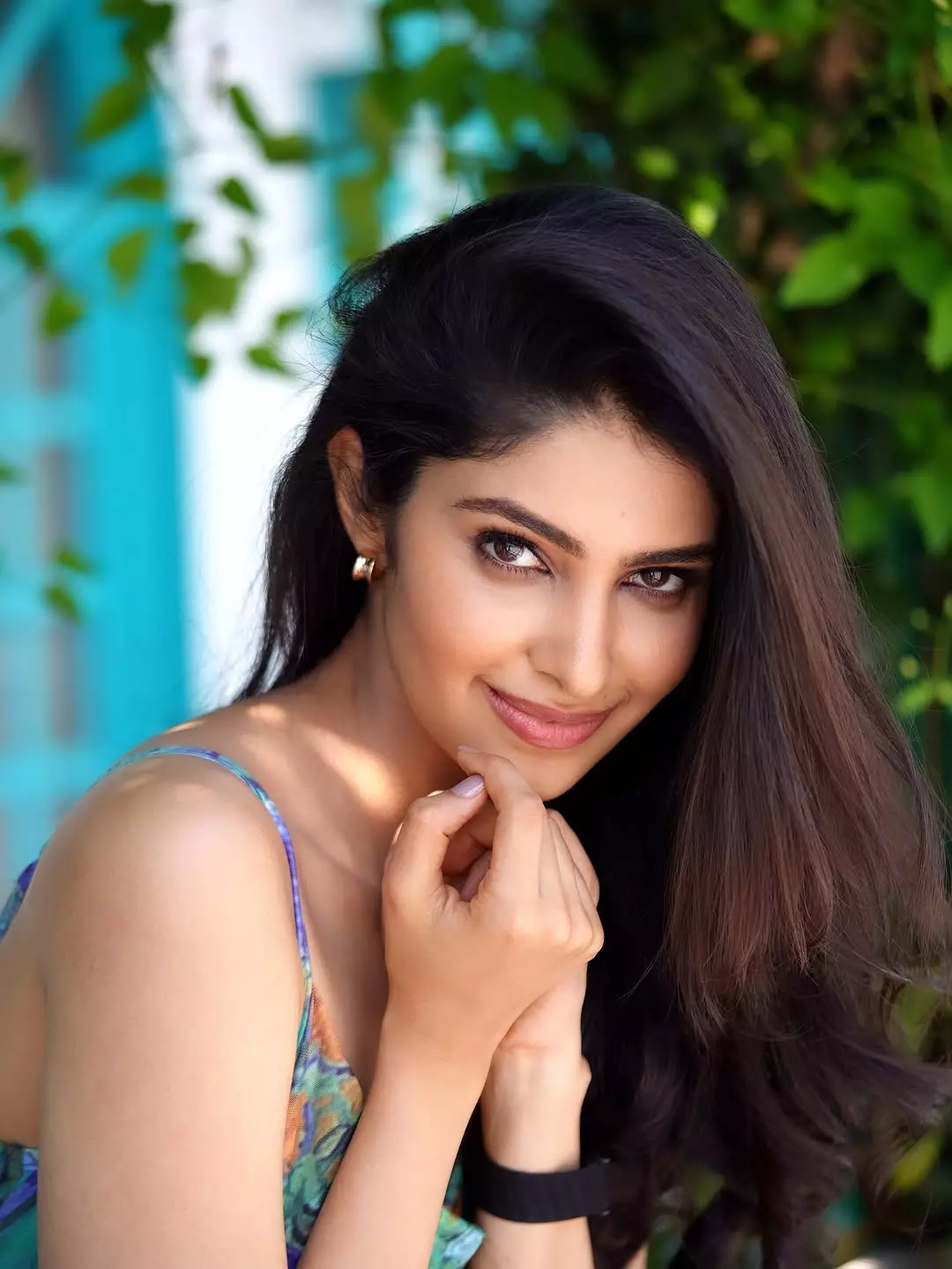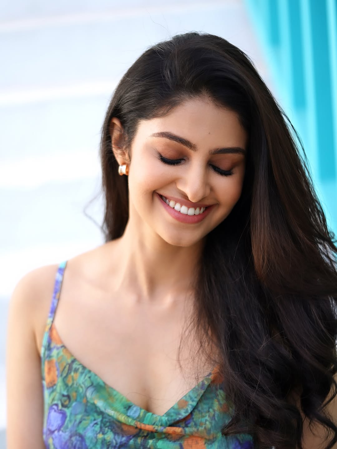 In a fresh and heartwarming new portrait, Manasa Varanasi lights up the frame with a bright, infectious smile. Leaning casually against a white backdrop in a fitted olive-green tank top and blue jeans, with one hand running through her long wavy hair, the former beauty queen exudes effortless charm, confidence, and approachability.