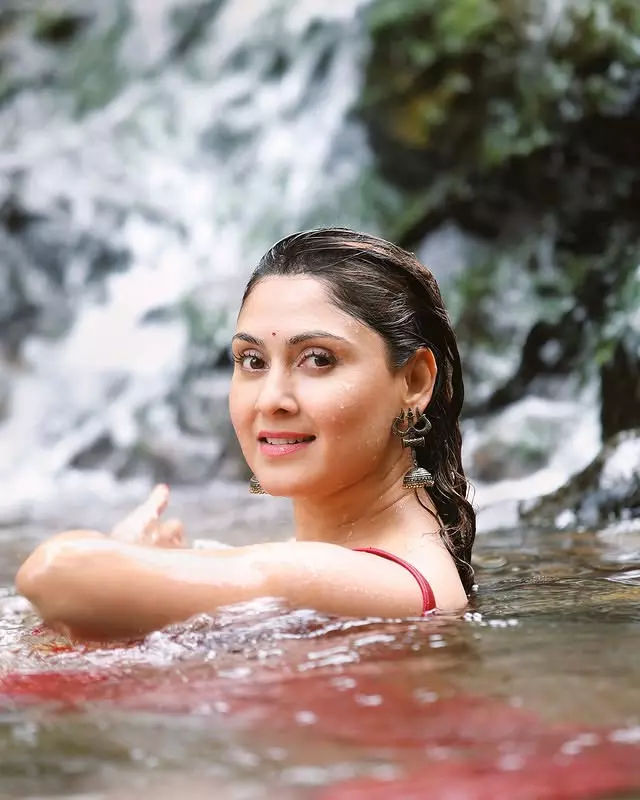 Recently, Manjari posted a breathtaking Instagram picture in a red saree, enjoying a serene waterfall.