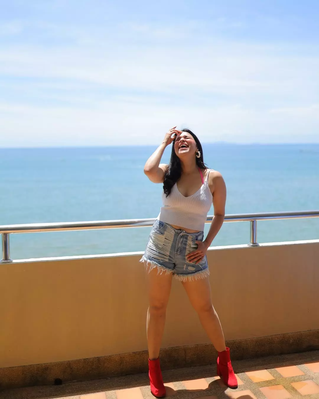 Hair styled in loose waves and barely-there makeup bring out her natural features. The background stays minimal, so the focus stays on her. It’s a clean shoot that doesn’t rely on heavy styling to make a point.