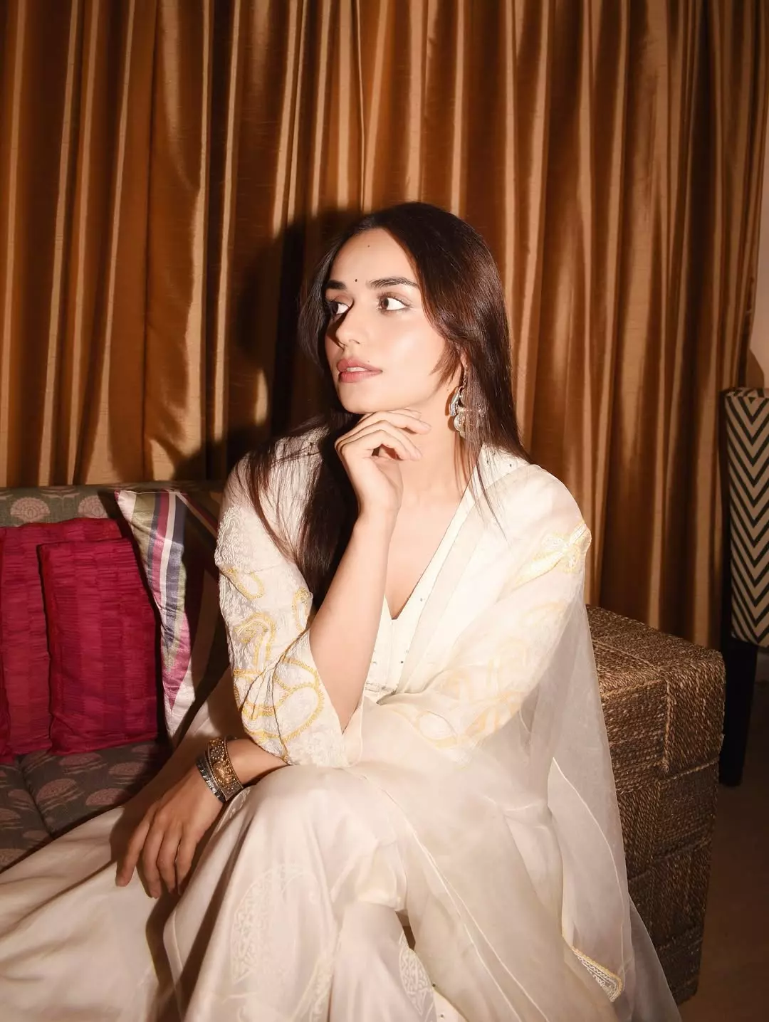 Manushi Chhillar shared a graceful moment on Instagram in a light saree with soft embroidery.