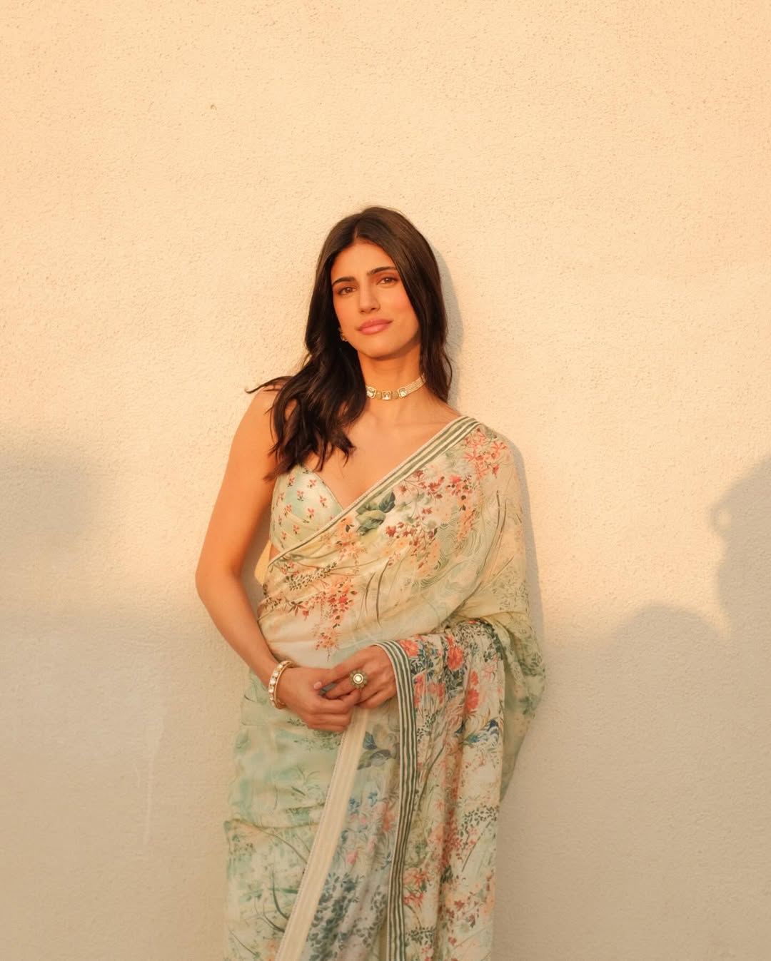 Her radiant look is elevated beautifully with sparkling jewels from @swarovski, while the iconic heels from @christianlouboutin add a touch of luxury and power to the overall appearance. Styled flawlessly by @shareendeosthale, every detail of the look reflects modern fashion sensibilities with classic charm. Hair and makeup by @juveria_k enhance her natural beauty, keeping the focus on her expressive features and polished aura.