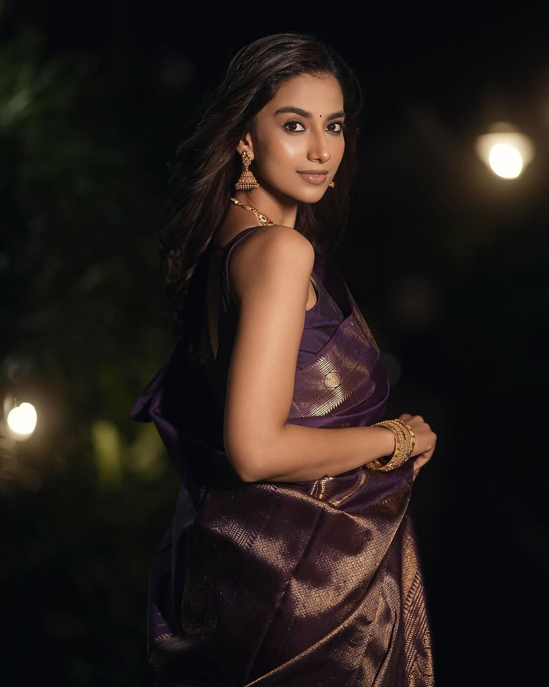 By: Tupaki Desk | 8 Jun 2025 2:53 PM ISTIn a recent Instagram post, actress Meenakshi Chaudhary shared a picture of herself draped in a regal purple saree with golden zari work. The caption read, “Uff the fever of saree 😝.” She always nails the saree looks and it's proven again.
