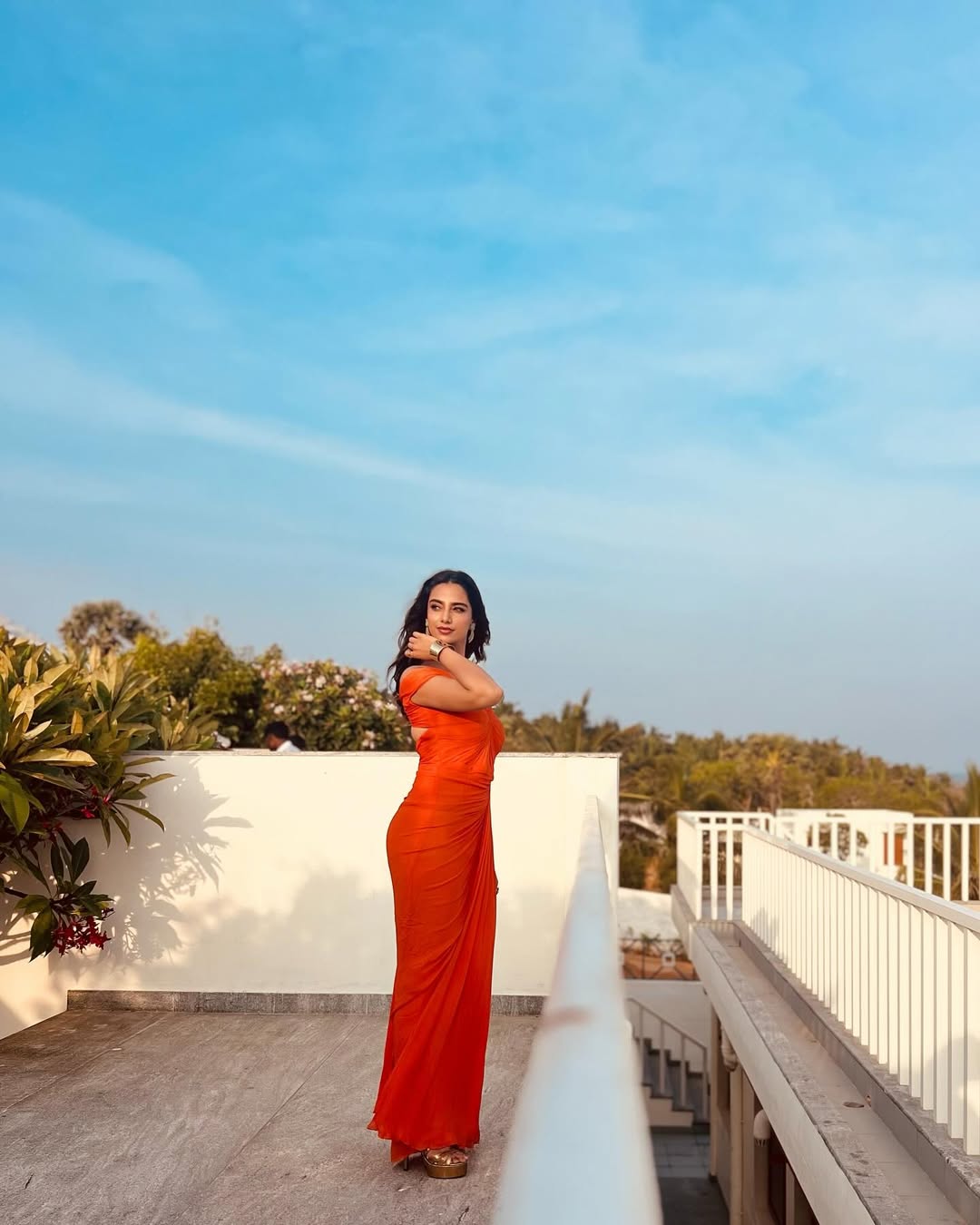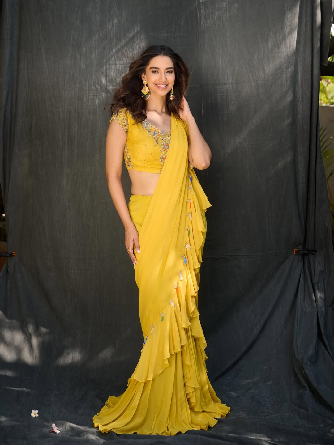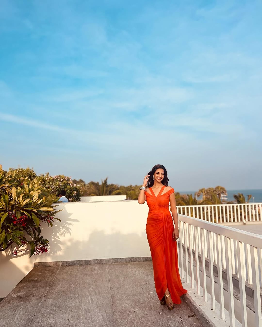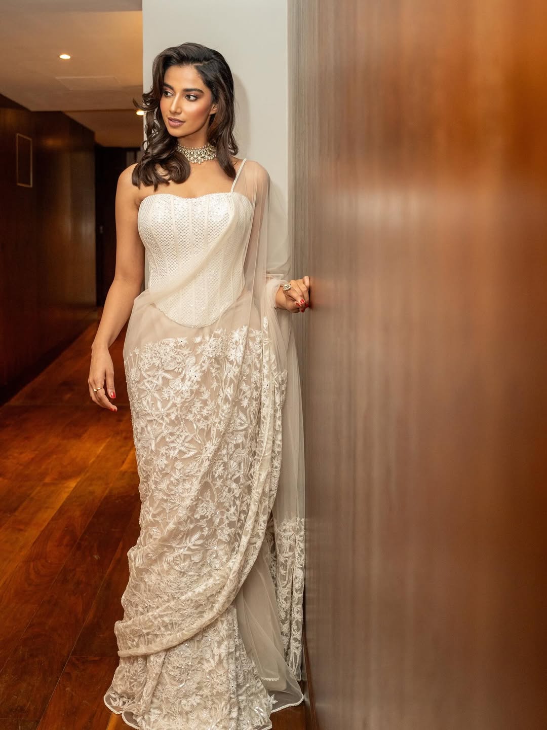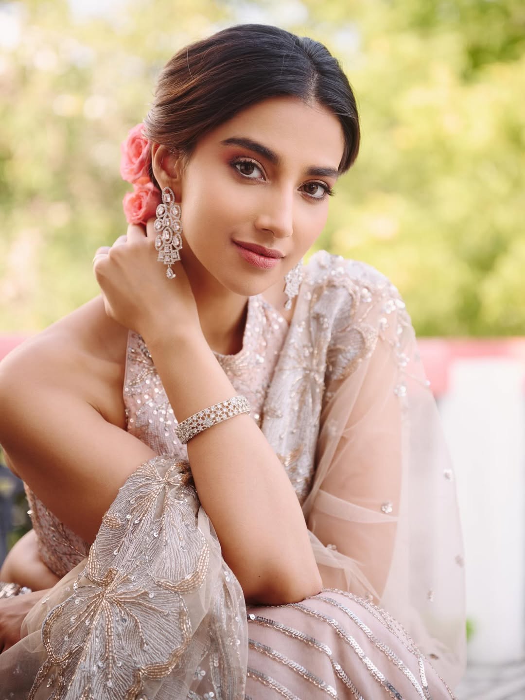 Styled beautifully by @kalyanik666, Meenakshi’s appearance is elevated by the exquisite design from @geethikakanumilli, which complements her silhouette perfectly. The delicate yet striking jewellery by @sholdsherni adds just the right amount of glamour without overpowering the ensemble. Her overall styling, coordinated by @saritha_shivarathri and @_tanu_chettiar, strikes a fine balance between sophistication and freshness.