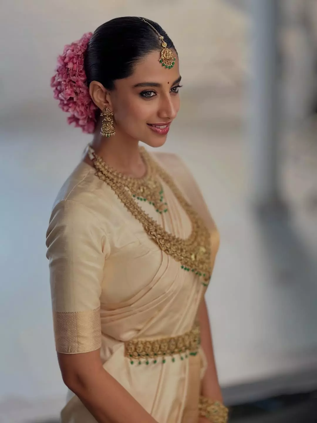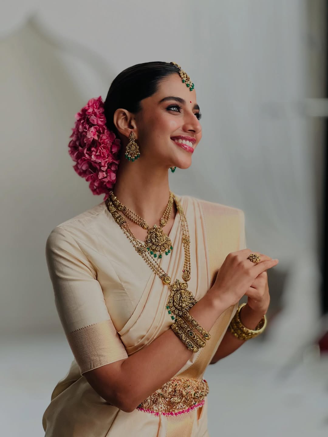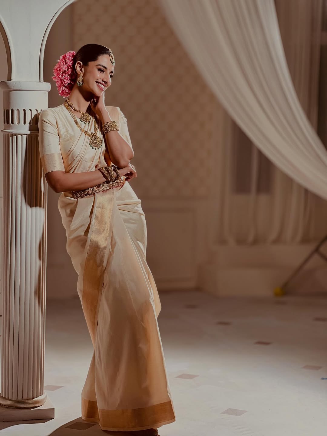 By: Priya Chowdhary Nuthalapti | 4 Oct 2025 9:55 AM ISTMeenakshi Chaudhary recently shared a picture on Instagram where she is seen in a traditional cream-colored saree paired with elegant gold jewelry. With flowers adorning her hair and a bright smile, she looked graceful and charming. She captioned the post, “Some bts pictures coz why not 🥰🌸💗” by giving her followers a glimpse of behind-the-scenes moments.
