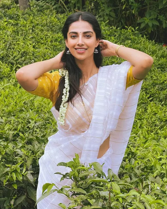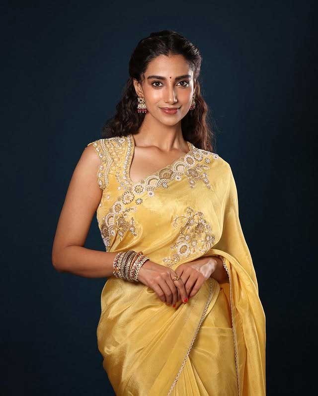 Meenakshi Chaudhary recently shared a picture on Instagram that caught everyone�s attention. She is seen eearing a yellow saree designed by @issadesignerstudio. Her glowing makeup was done by @makeuphairbyrahul, and her soft wavy hairstyle was styled by @chinnisrinu-_stylist. She completed her look with jewellery from @ekadhijewels, styled under the guidance of @kalyanik666. The photo was captured by @tdf.studioz and her overall styling team also included @aksharamahi7.