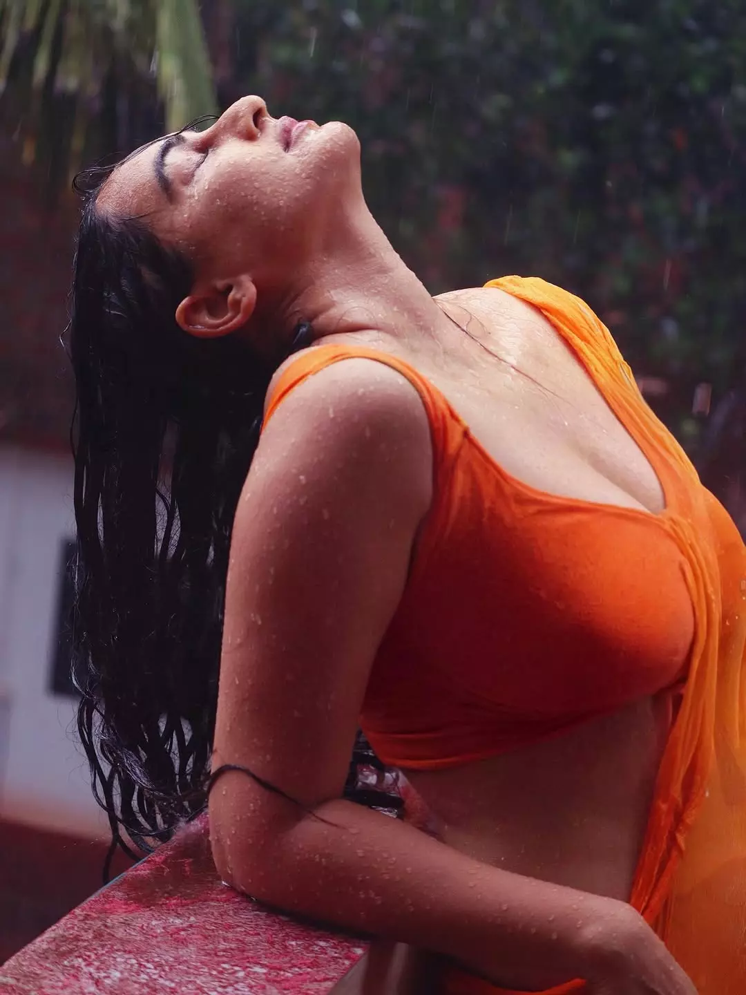 Megha Shukla Shares Monsoon Magic in Orange Saree
