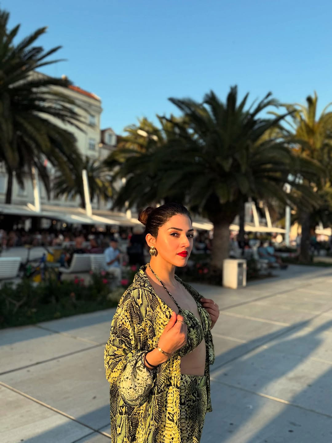 Mehreen Pirzada is soaking in the golden hour by the sea and her latest Instagram post captures the perfect vacation. She is seen sitting by the waterfront with cruise ships in the background.