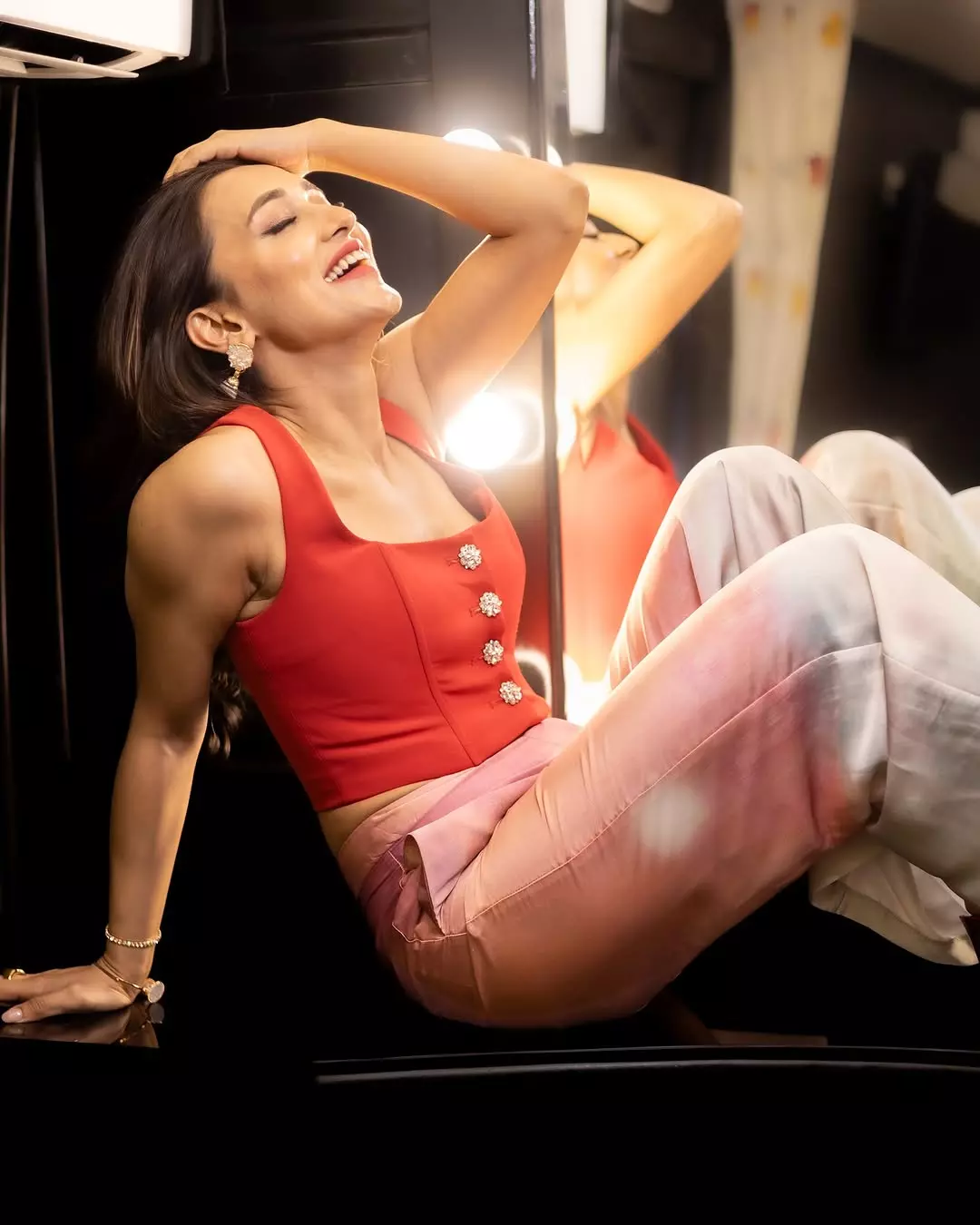 One hand on her hip, the other casually behind her head, Mimi serves unapologetic attitude and legs-for-days glamour that only the Tollywood queen-turned-MP can pull off so effortlessly.
