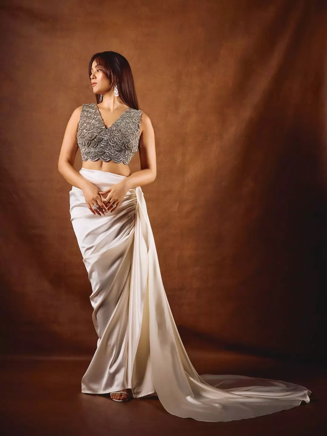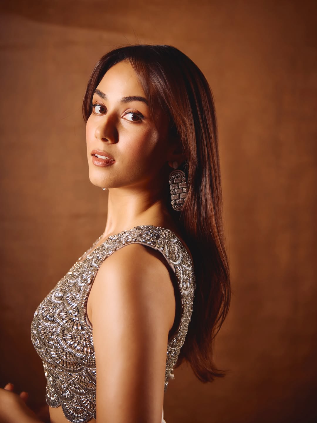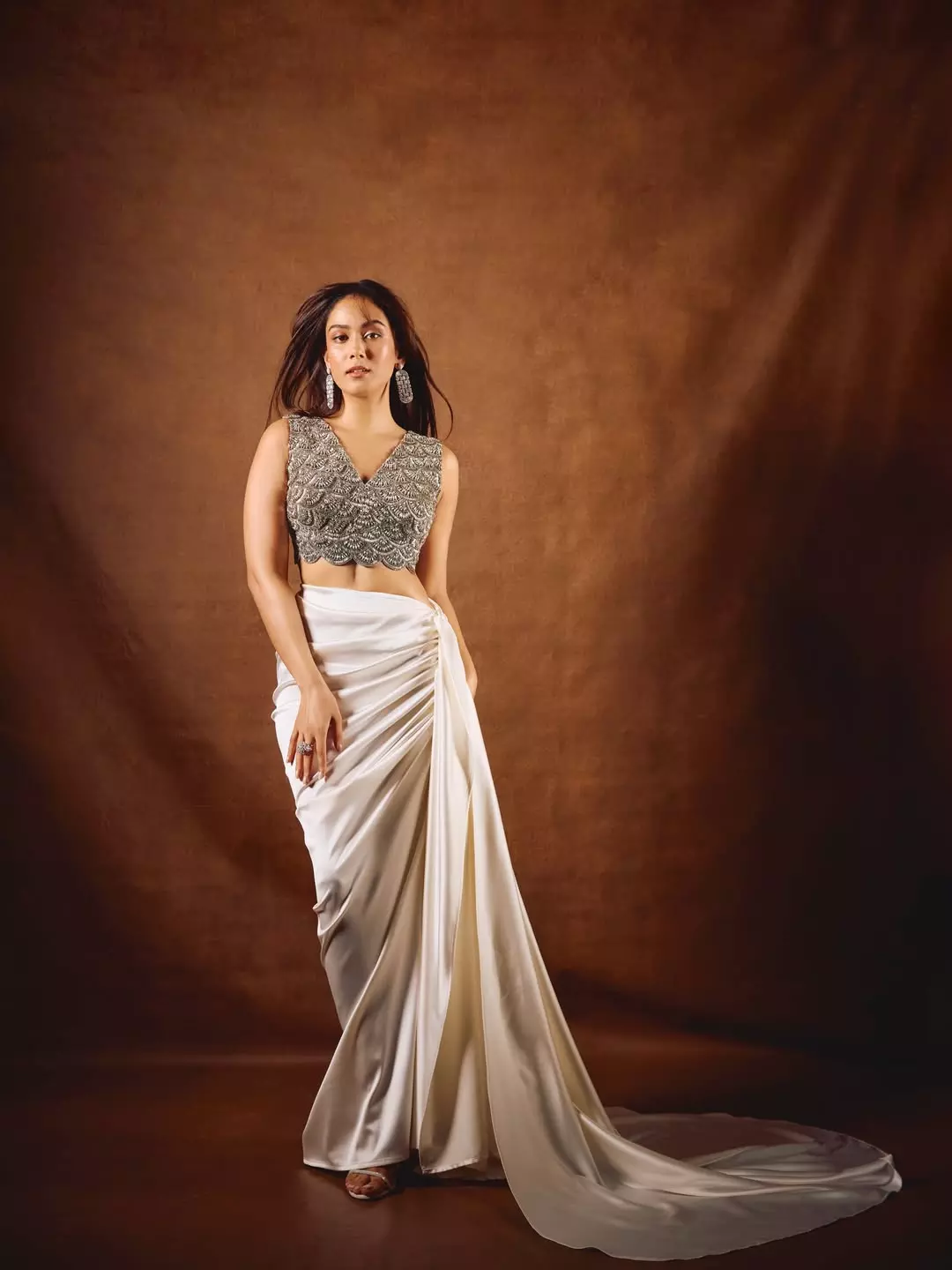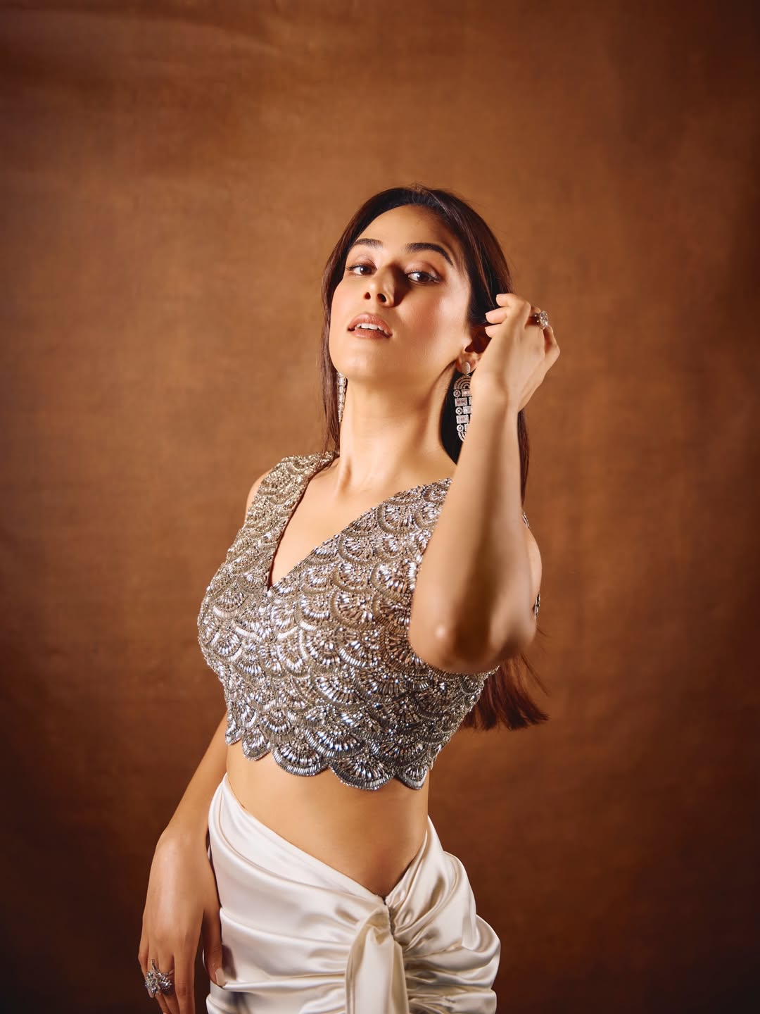 By: Tupaki Gallery Desk | 15 Feb 2026 5:26 PM ISTMira Kapoor stuns in this breathtaking portrait, redefining modern elegance with effortless grace. Dressed in a heavily embellished silver blouse paired with a softly draped satin skirt, she strikes the perfect balance between traditional craftsmanship and contemporary style. The intricate detailing on her blouse catches the light beautifully, while her sleek hair and statement earrings add a touch of understated sophistication. Set against a warm-toned backdrop, Mira’s poised expression and confident stance make this frame nothing short of captivating.