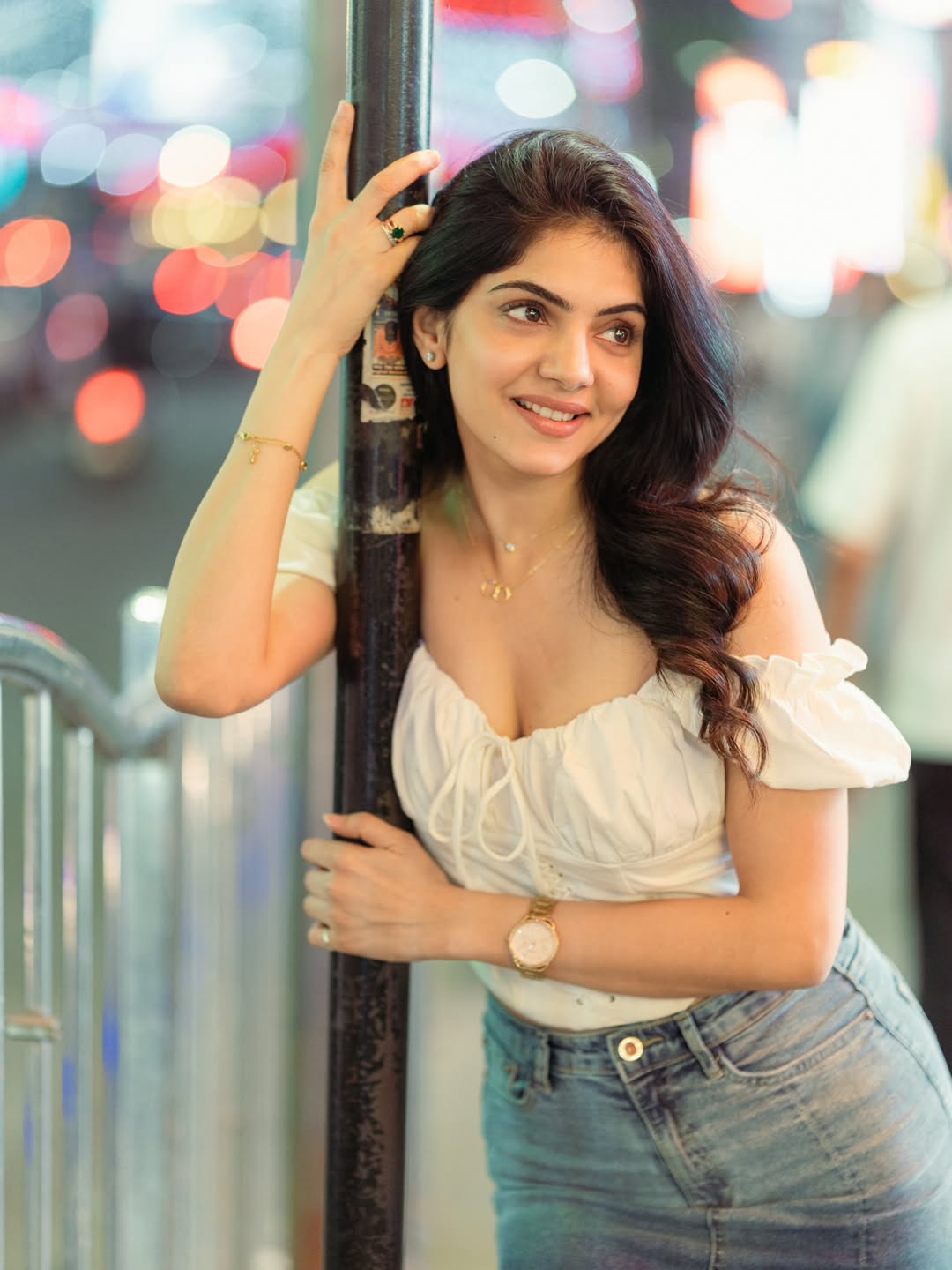 By: Tupaki Gallery Desk | 16 April 2026 12:15 PM ISTMisha Narang turns heads in this chic casual look, rocking an off-shoulder white top paired with a stylish blue denim skirt and white sneakers. The young actress posed confidently on a busy city street, exuding effortless charm and modern appeal.