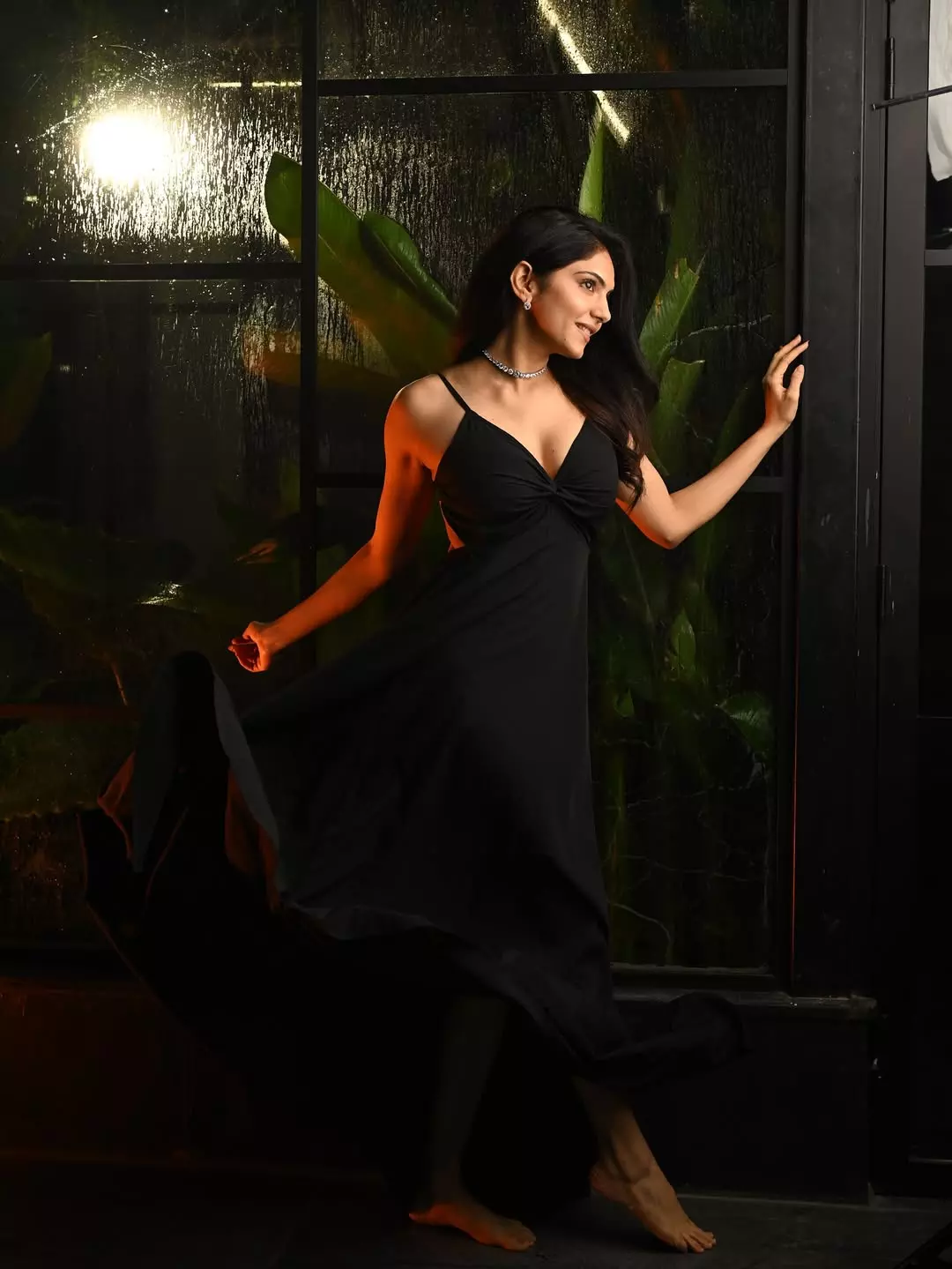 By: Tupaki Desk | 8 Nov 2025 9:05 PM ISTIn a mesmerizing interplay of shadow and sparkle, Misha Narang emerges as a beacon of poised allure in this elegant black ensemble from Bespoke Wala by Himani Raj, its intricate fringe and sequined skirt cascading like midnight whispers against a softly draped backdrop. Adorned with luminous emerald jewelry that catches the light on her smiling lips and expressive eyes, she embodies unyielding grace, her hand gently tracing the necklace as if summoning inner fire. Captured masterfully by photographer @zokandetanmay, the image pulses with the empowering mantra: "Be the light you wish to find in the dark ," a reminder from the rising Indian actress—known for her nuanced roles in indie films and OTT thrillers—that true elegance shines from within, turning obscurity into a canvas for self-discovery and quiet rebellion.